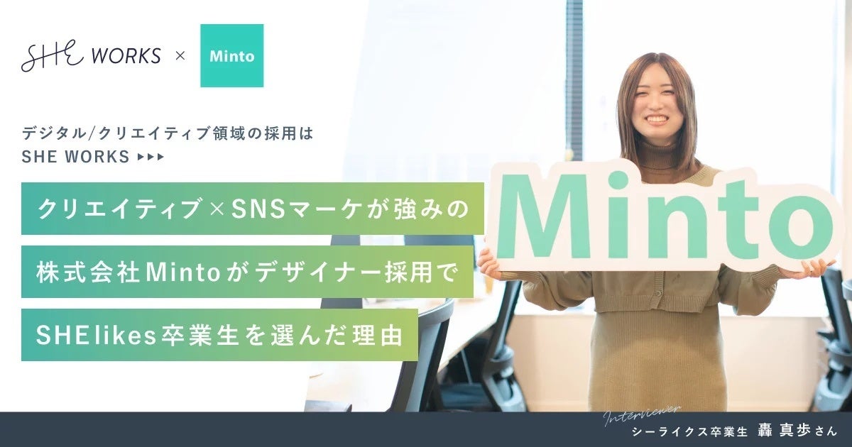 SHEでSNSを学んだクリエイティブ×SNSマーケが強みの株式会社Mintoがデザイナー採用でSHElikes卒業生を選んだ理由:https://shares.shelikes.jp/posts/4933868
