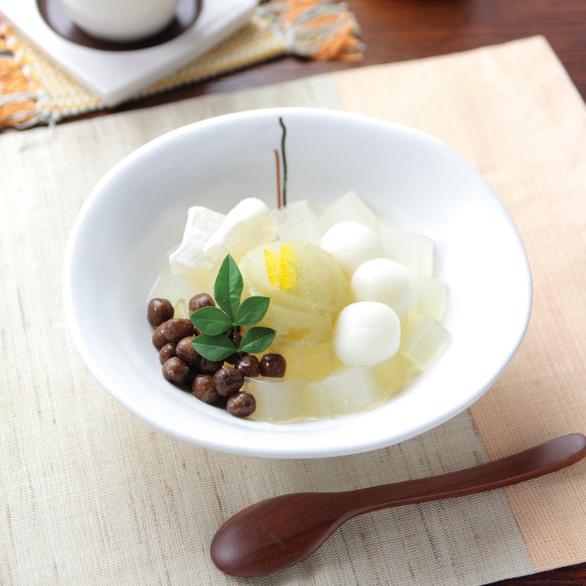 柚子づくしのさわやか和スイーツ「柚子白玉あんみつ」はいかがでしょうか。