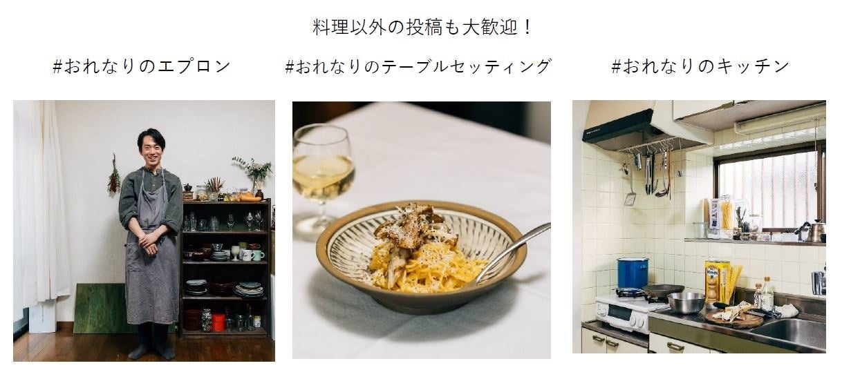 料理の魅力は作ることだけにあらず。エプロン選び、テーブルセッティング、キッチンを心地よい環境にしていくことを含めて、料理をする楽しさだ! ということで、エプロンの着こなし、テーブルセッティングの美しさ、キッチンの佇まいも投稿していただきたいと思います。こちらも自薦他薦問いません。どれか1つだけの投稿でもOKです。最も「いいなぁ」と思う投稿をした方には特製エプロンをプレゼント!