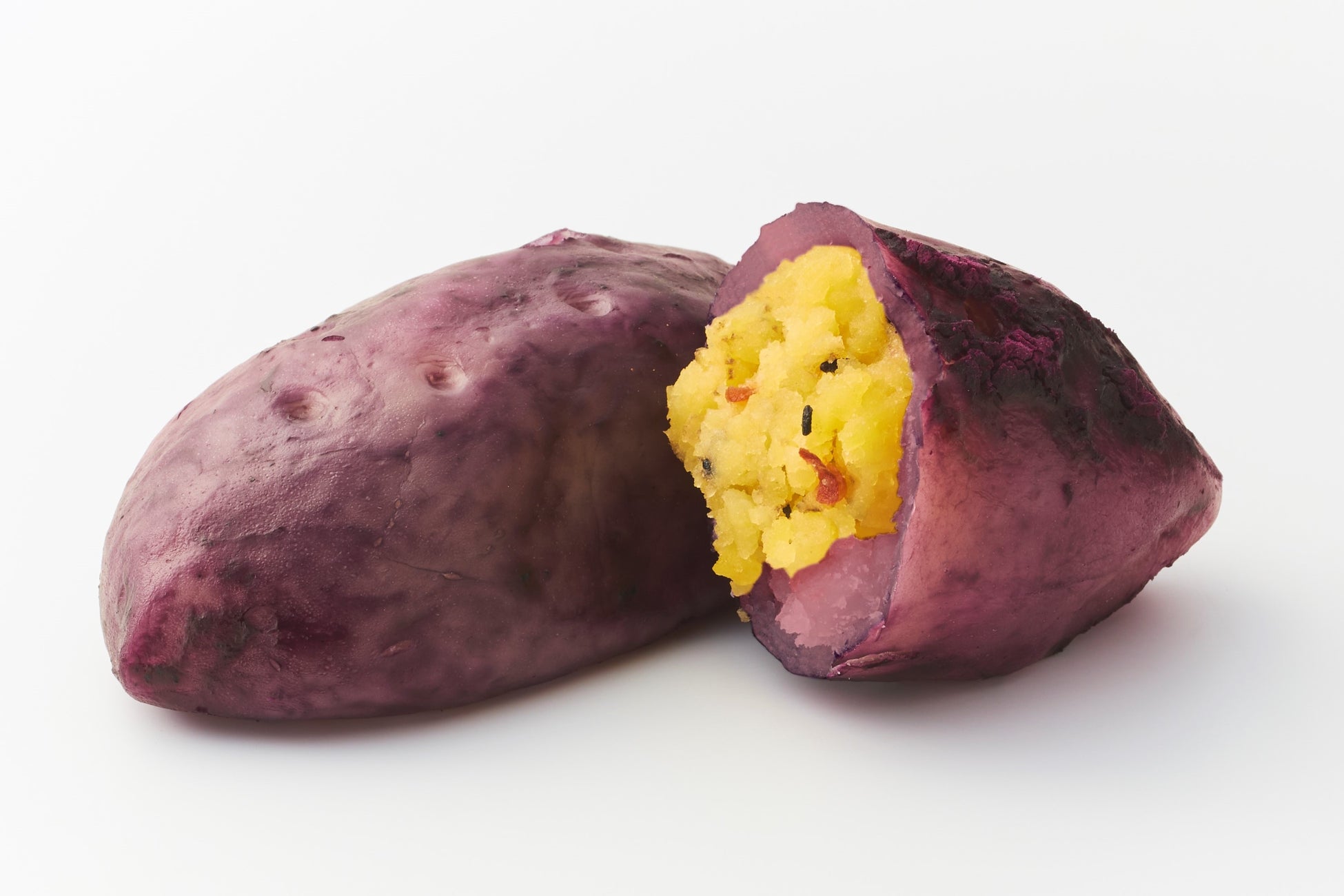鮮やかな紫色に黒ごま、でこぼことした見た目でさつまいもそっくりに仕上げています。