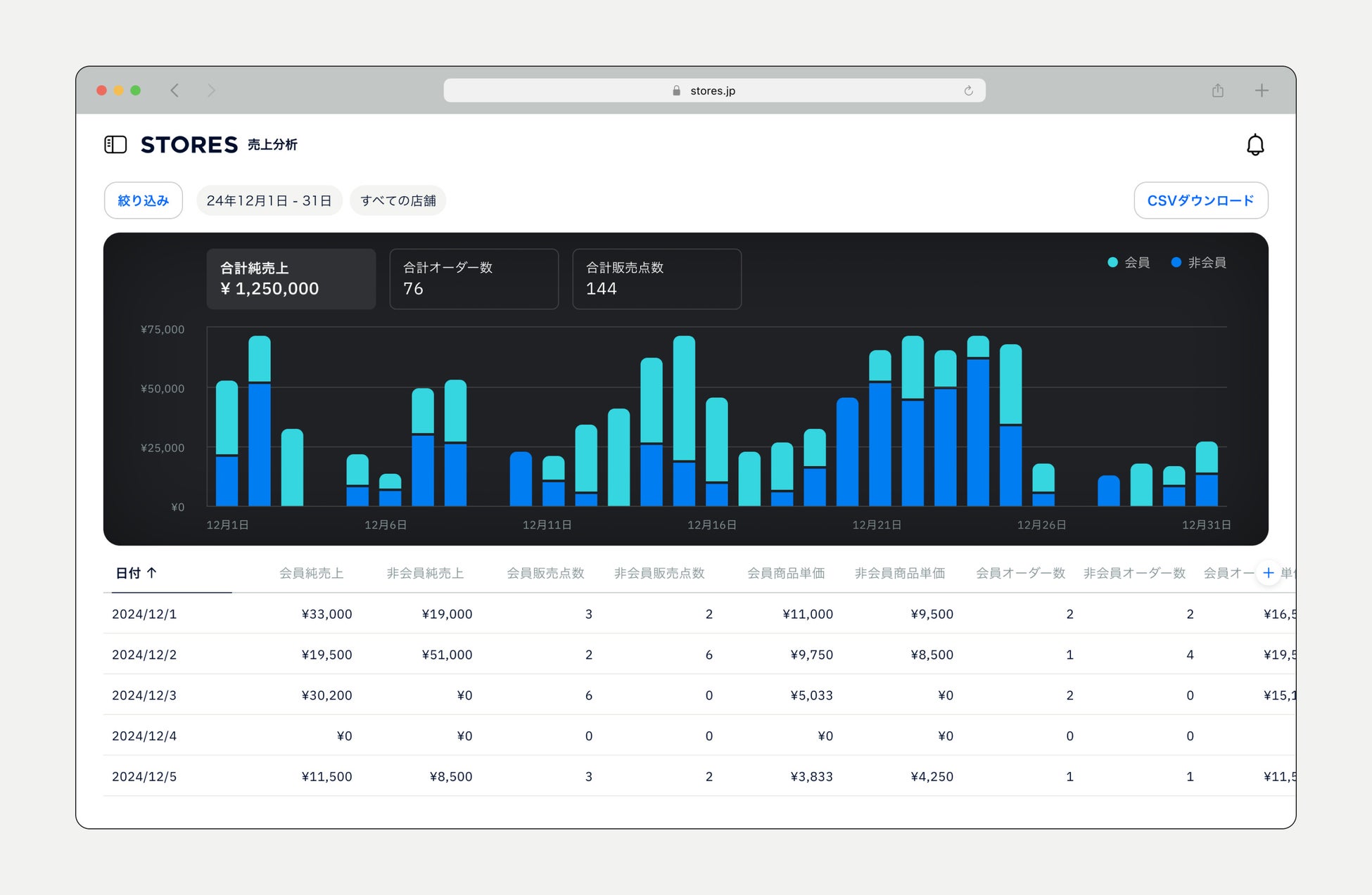 対象ユーザー:STORES データ分析 をご契約いただいた方
