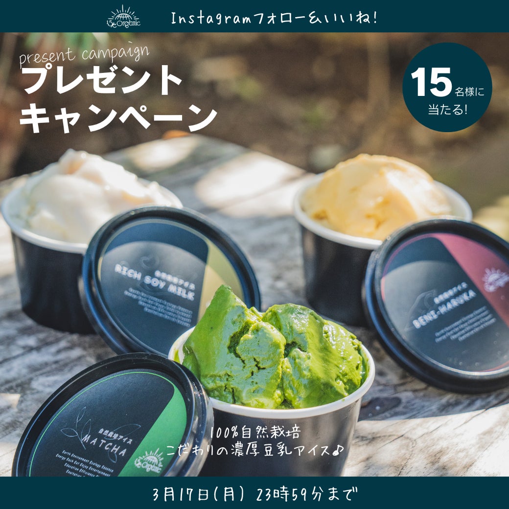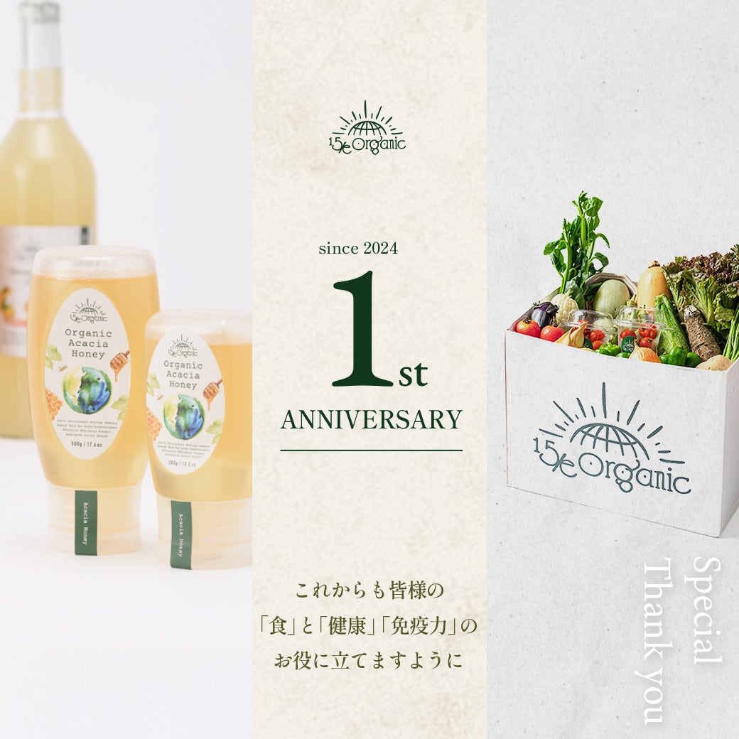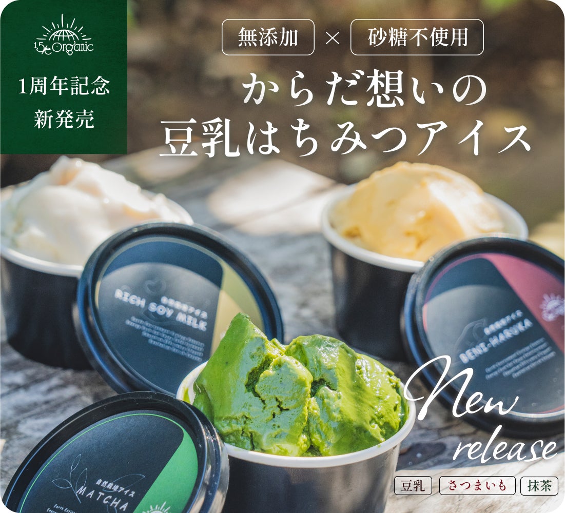 この度、日頃からご愛顧いただいている皆様に感謝の気持ちを込めて、"15/e organicオリジナル100%自然栽培 豆乳はちみつアイスの販売"と"1周年キャンペーン"を開始しました。