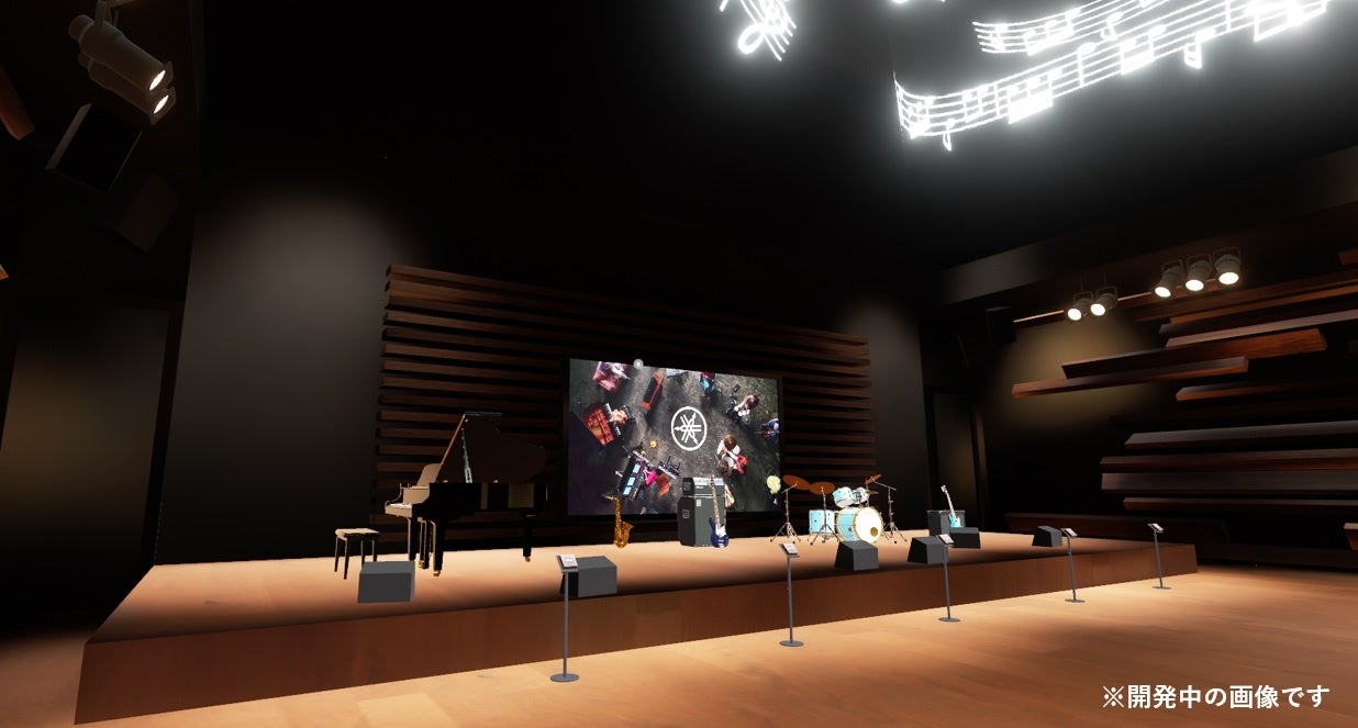 ヤマハ銀座スタジオを模した空間で、バーチャルライブや対談イベントを開催します。イベント開催時以外の時間帯は、スタジオのステージ上に展示した3D楽器を自由にご覧いただけます。