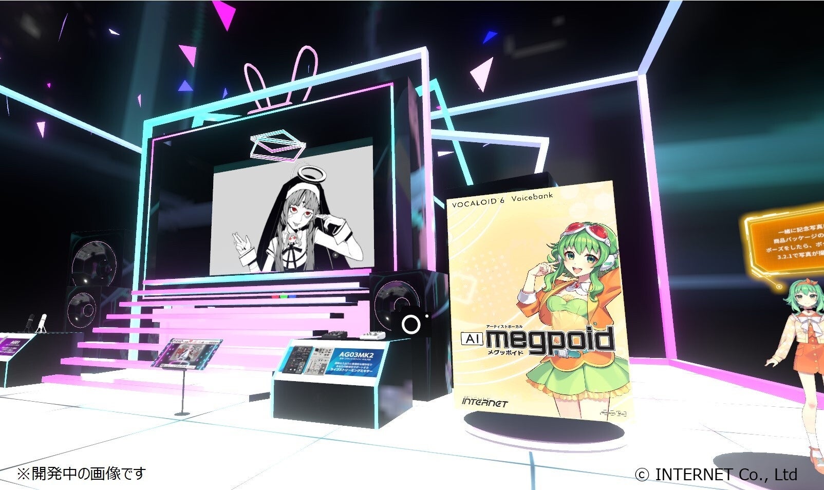 ボーカロイドカルチャーに関わるクリエイターやファンへのリスペクトを込めたフロアです。最新の「VOCALOID™6」を紹介するほか、キャラクターフォトブースを設置。初音ミク、Megpoid(メグッポイド)の等身大パネルと一緒に写真を撮っていただけます。また、ストリーマーに人気の高いヤマハのライブ配信向け機器「AGシリーズ」を3Dアイテム化して展示し、有名ボカロプロデューサー、ピノキオピーの代表作「神っぽいな」の“踊ってみた”動画のライブ配信を疑似体験できるコンテンツをご用意。「AGシリーズ」に触れると、来場者のアバターがモニターに吸い込まれ、「神っぽいな」のPVをバックにアバターがモニターの中でダンスを踊ります。
