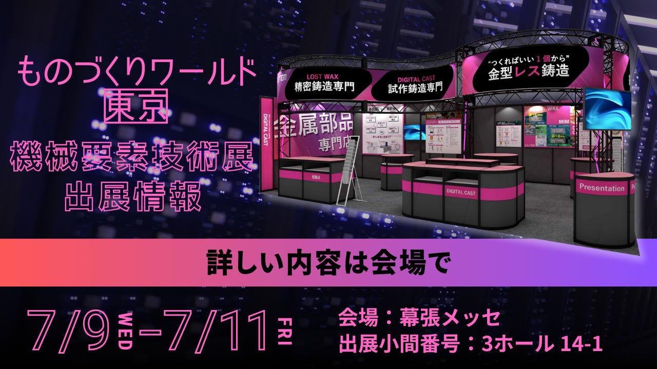 株式会社キャステム(本社:広島県福山市、代表:戸田拓夫)は、2025年7月9日(水)~11日(金)に幕張メッセで開催される「ものづくりワールド東京 機械要素技術展」に出展いたします。今年創業55年を迎えた弊社が誇る、鋳造や金属加工技術を展示。創業時から培ってきたロストワックス精密鋳造品の展示や、金型レス鋳造「デジタルキャスト」のプレゼンテーション、鋳造実演などを通じ、来場者の皆様にリアルな技術体験を提供。最適な製法を比較できる技術相談ブースとしてもご活用ください。