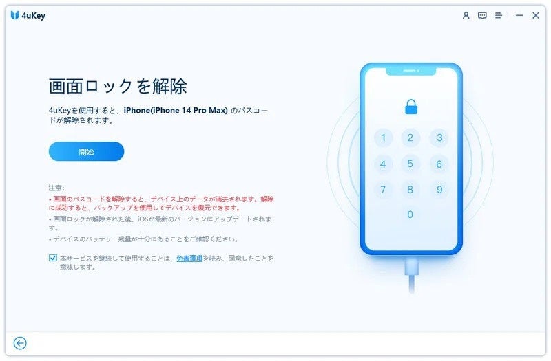Step1:PCで4uKeyを起動して、ホーム画面で「解除開始」をクリックします。