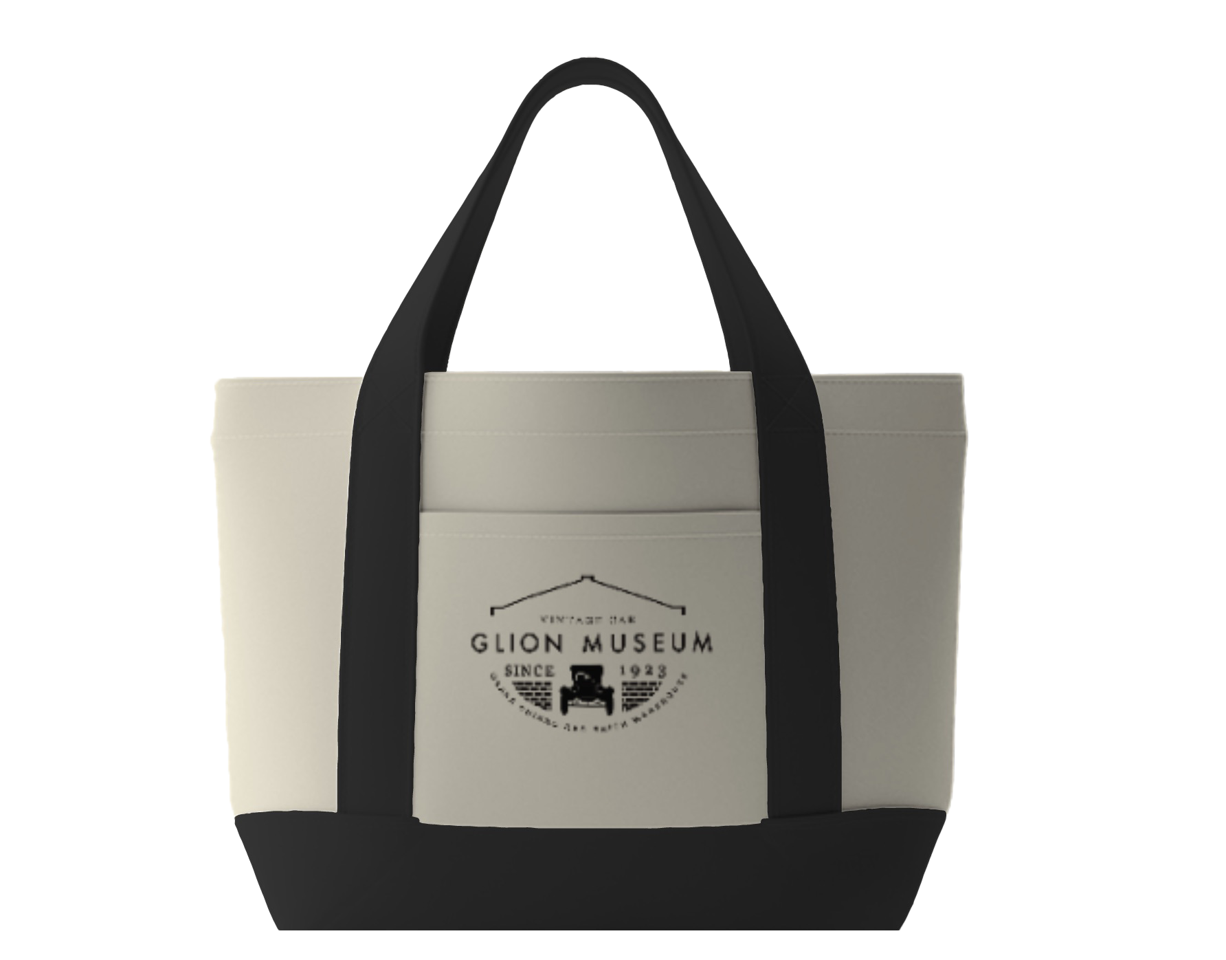 トートバッグには赤レンガ倉庫の屋根と、クラシックカーを代表した「T型Ford」のシルエットを組み合わせた、“正にGLION MUSEUM”といえるオリジナルのロゴがアクセントに。