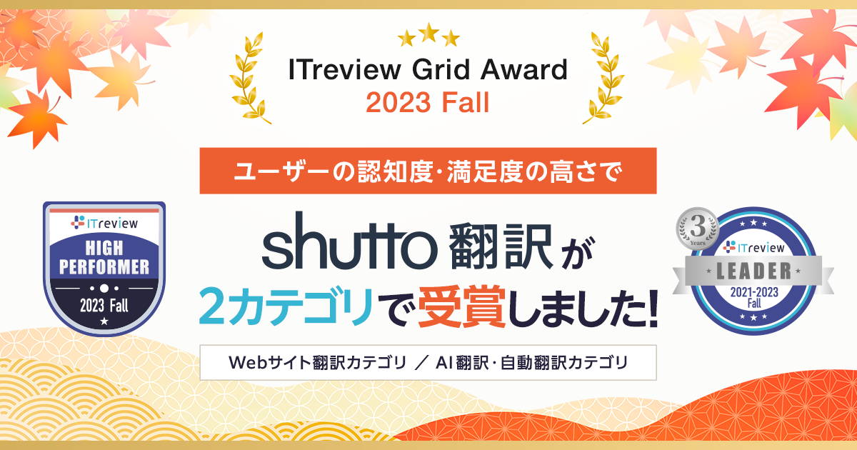 「ITreview Grid Award 2023 Fall」2部門でWebサイト翻訳サービス「shutto翻訳」が受賞!