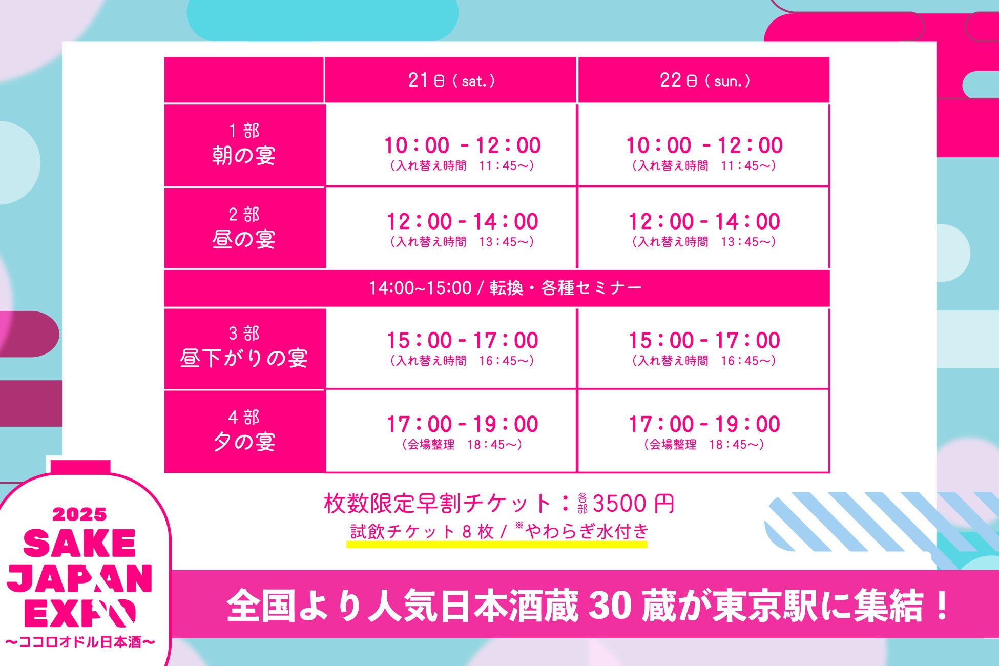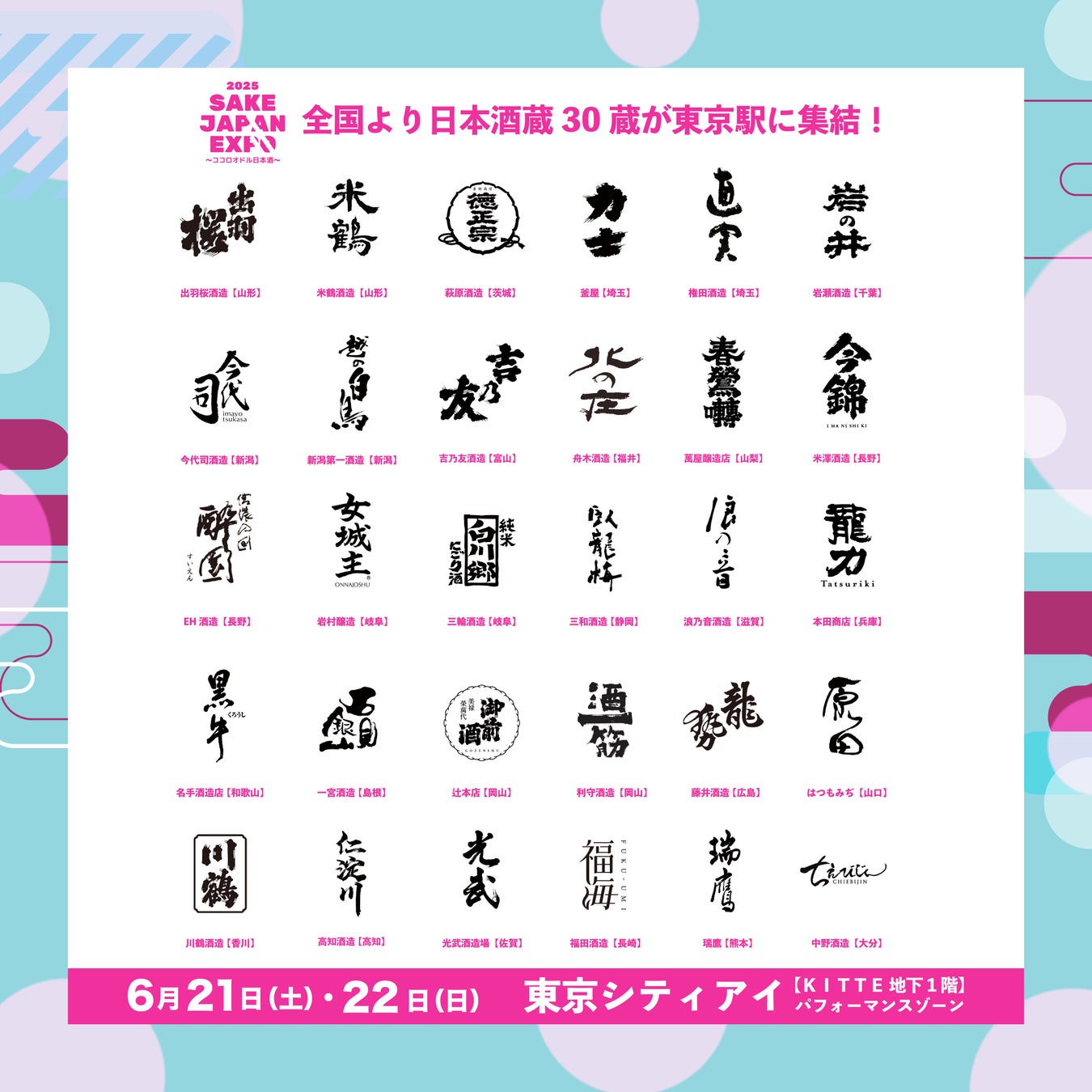全国30蔵、150銘柄以上の日本酒が東京駅に集結!『SAKE JAPAN EXPO 2025 〜ココロオドル日本酒〜』TIGETにてチケット販売中