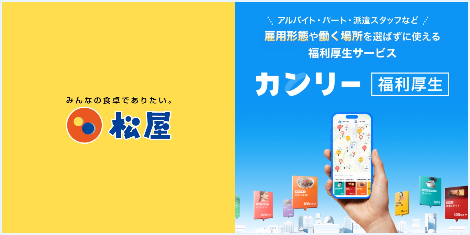 牛めしチェーン店 松屋を運営する株式会社松屋フーズは、2024年3⽉より株式会社カンリーが提供する福利厚生サービス『カンリー福利厚生(フクリー)』にクーポン掲載パートナーとして参加し、カンリー福利厚生(フクリー)上に限定クーポンの掲載が決定しましたので、お知らせ致します。
