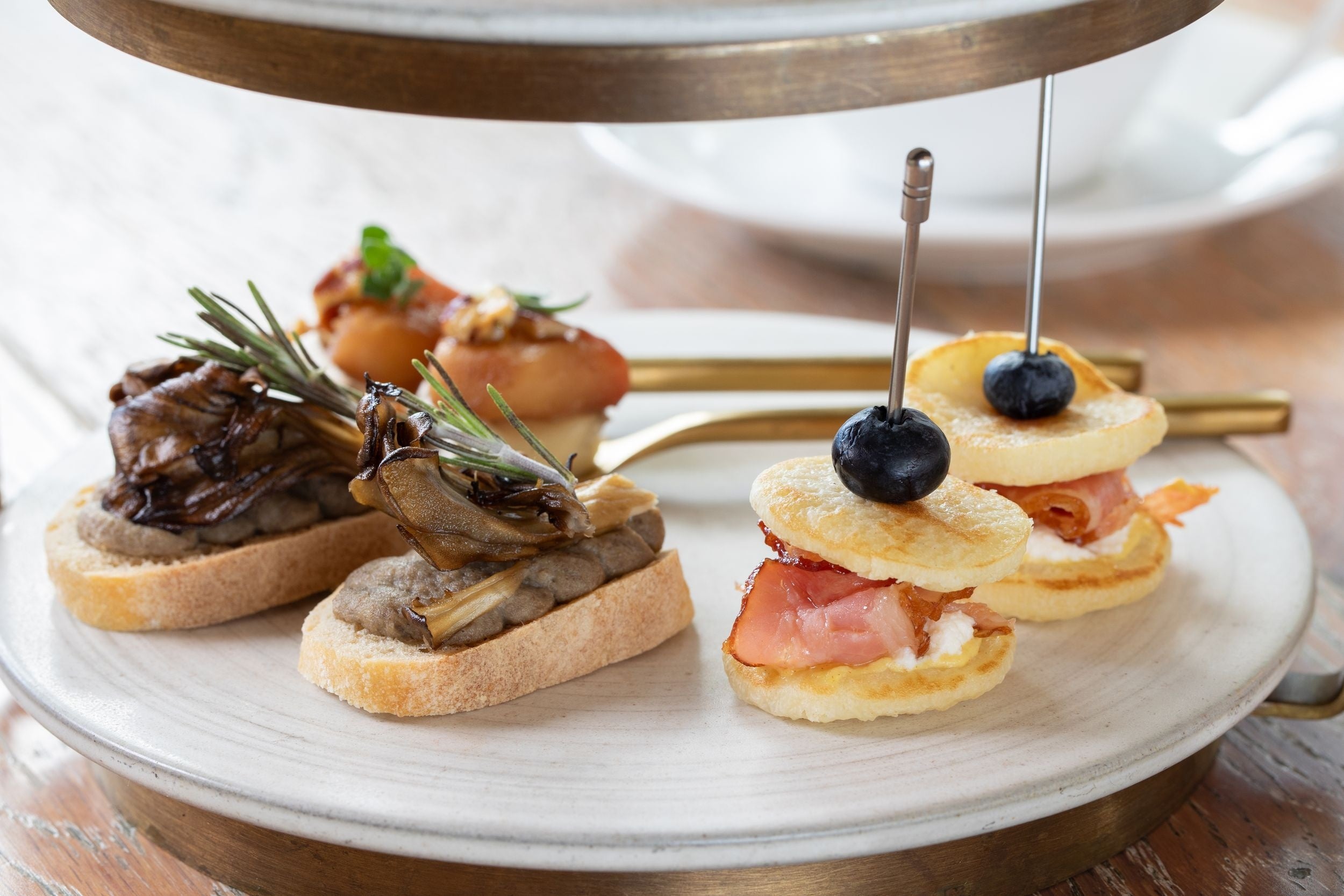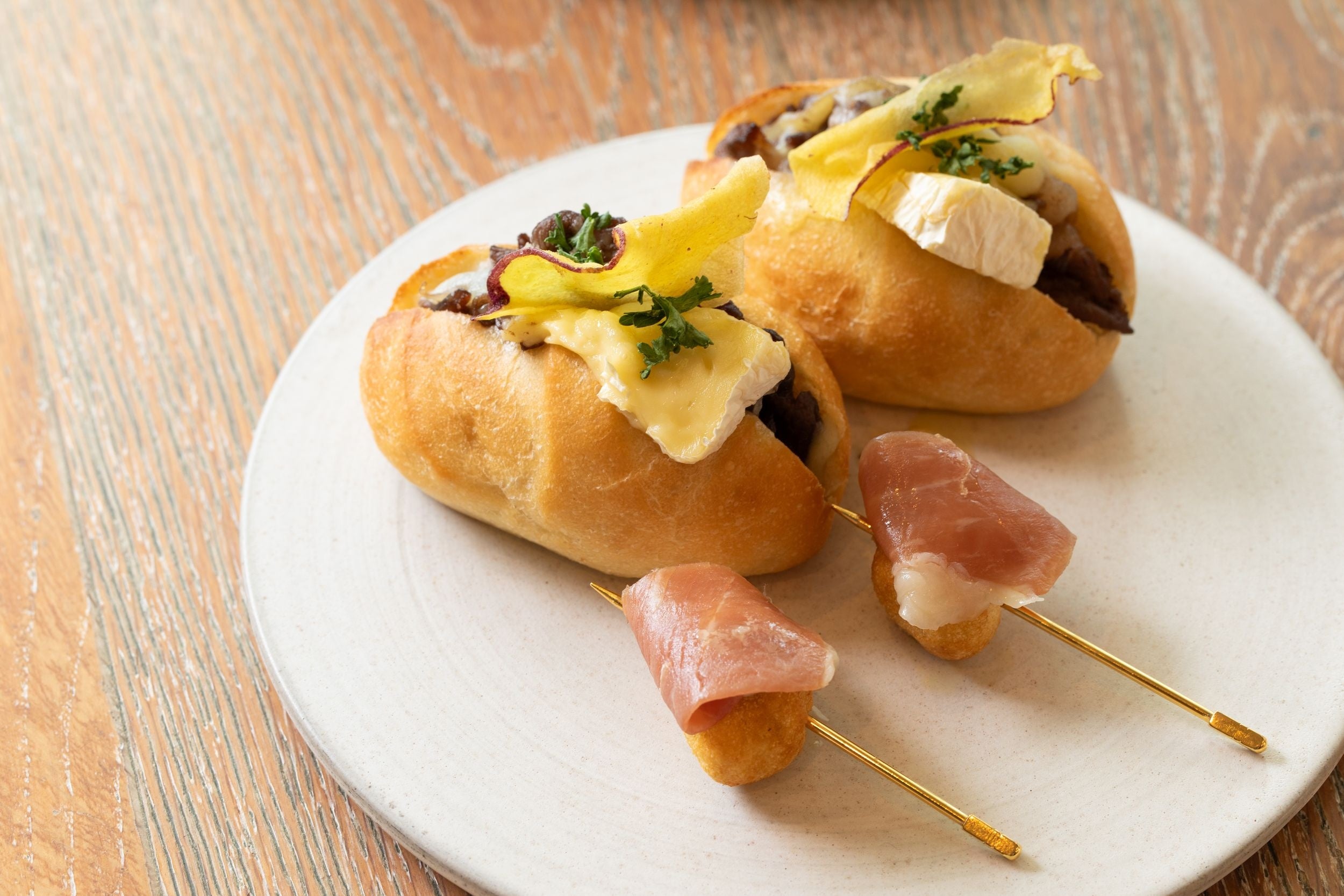 また、旨味を凝縮させた「きのこクリームのクロスティーニ」、甘酸っぱい味わいにコク深さをプラスした「ブリーチーズと焼きりんごのワンスプーン」を含むバリエーション豊かな旬の食材を使用したセイボリーを盛り込みました。