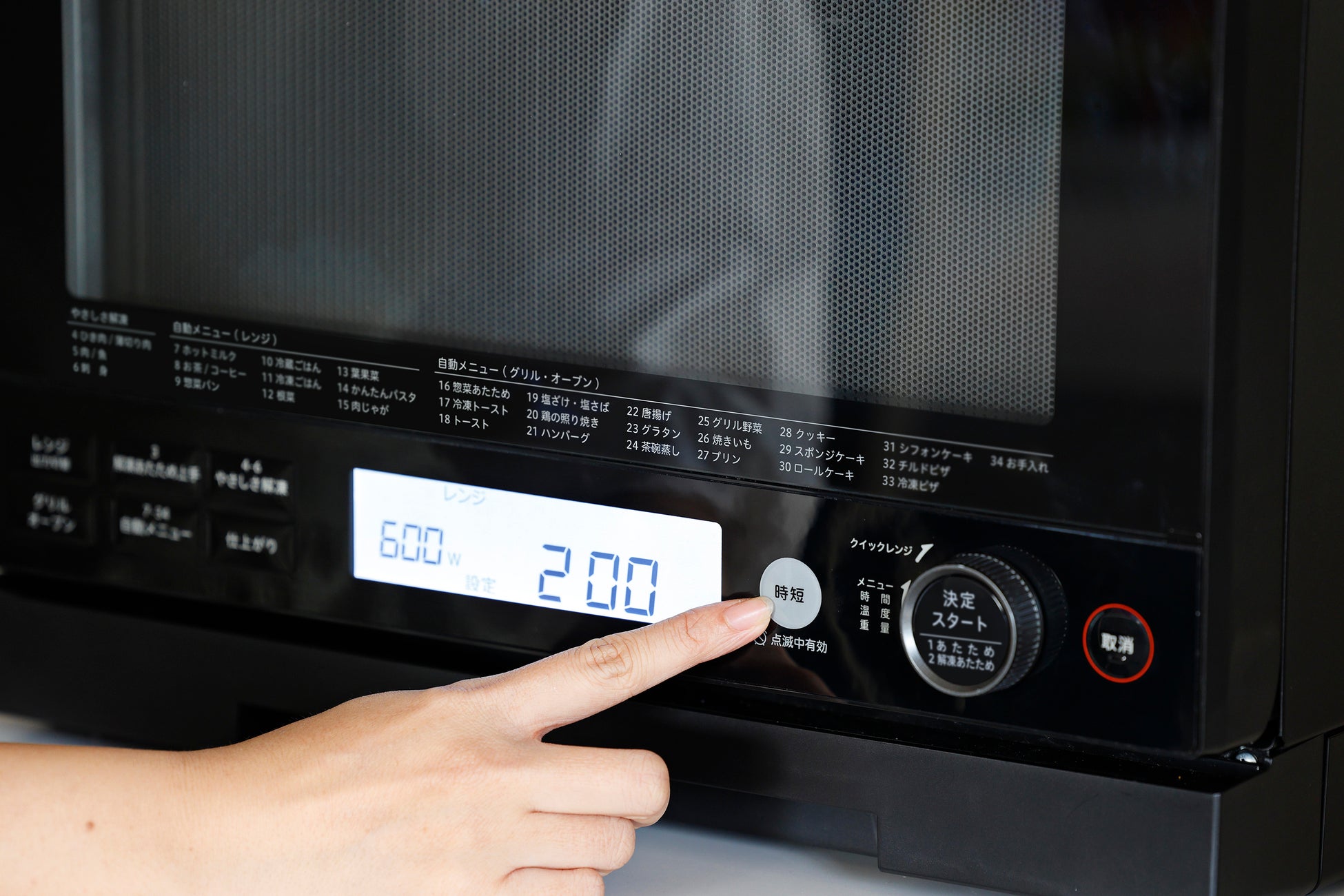 500W・600Wでのマニュアルあたため時に、あたため時間を自動で短縮してくれる「時短ボタン」を搭載。900Wの高出力を組み合わせることで、最大約39%の時短*3につながります。