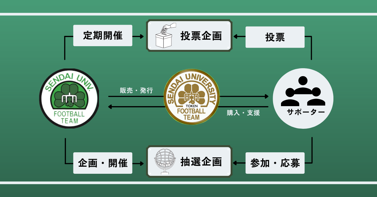 仙台大学サッカー部は、トークン発行によってこれまで閉鎖的とされてきた「部活動」の運営を、参加・共創型に変えることを目指しています。