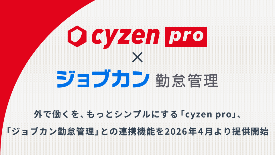 外で働くを、もっとシンプルにする「cyzen pro」、「ジョブカン勤怠管理」との連携機能を2026年4月より提供開始