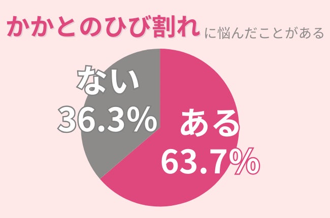 調査の結果、63.7%の方がかかとのひび割れに悩んだことがあることが明らかになりました。