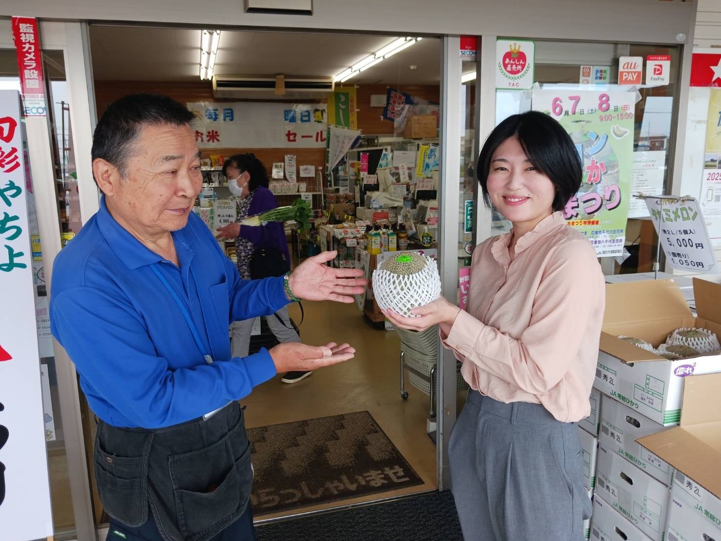 実際に無限フルーツチケットが使用可能になった6/2(月)初日に町を訪れた方は、1,000円相当のメロンを受け取られました(受け取った方の許諾を得てお写真を掲載しております)。