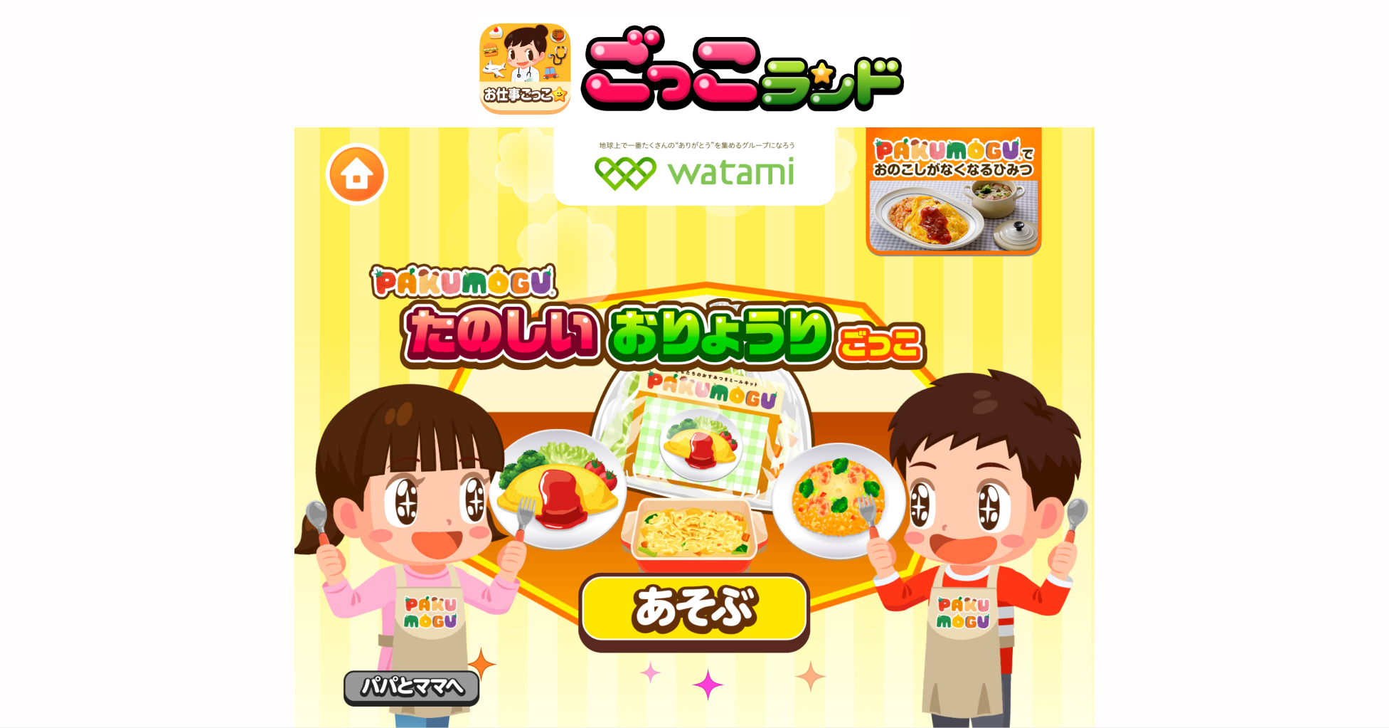 本ゲームを協賛するワタミ株式会社(以下「ワタミ」)は、子どもたちが「おいしい!」と完食してくれることを目指し、子ども向けのミールキット「PAKU MOGU」を提供しています。育ち盛りの子どもたちの食生活をサポートしたりご家庭の食事準備負担の軽減ができるミールキットをより身近に感じていただきたいという想いから、『ごっこランド』への出店が実現しました。