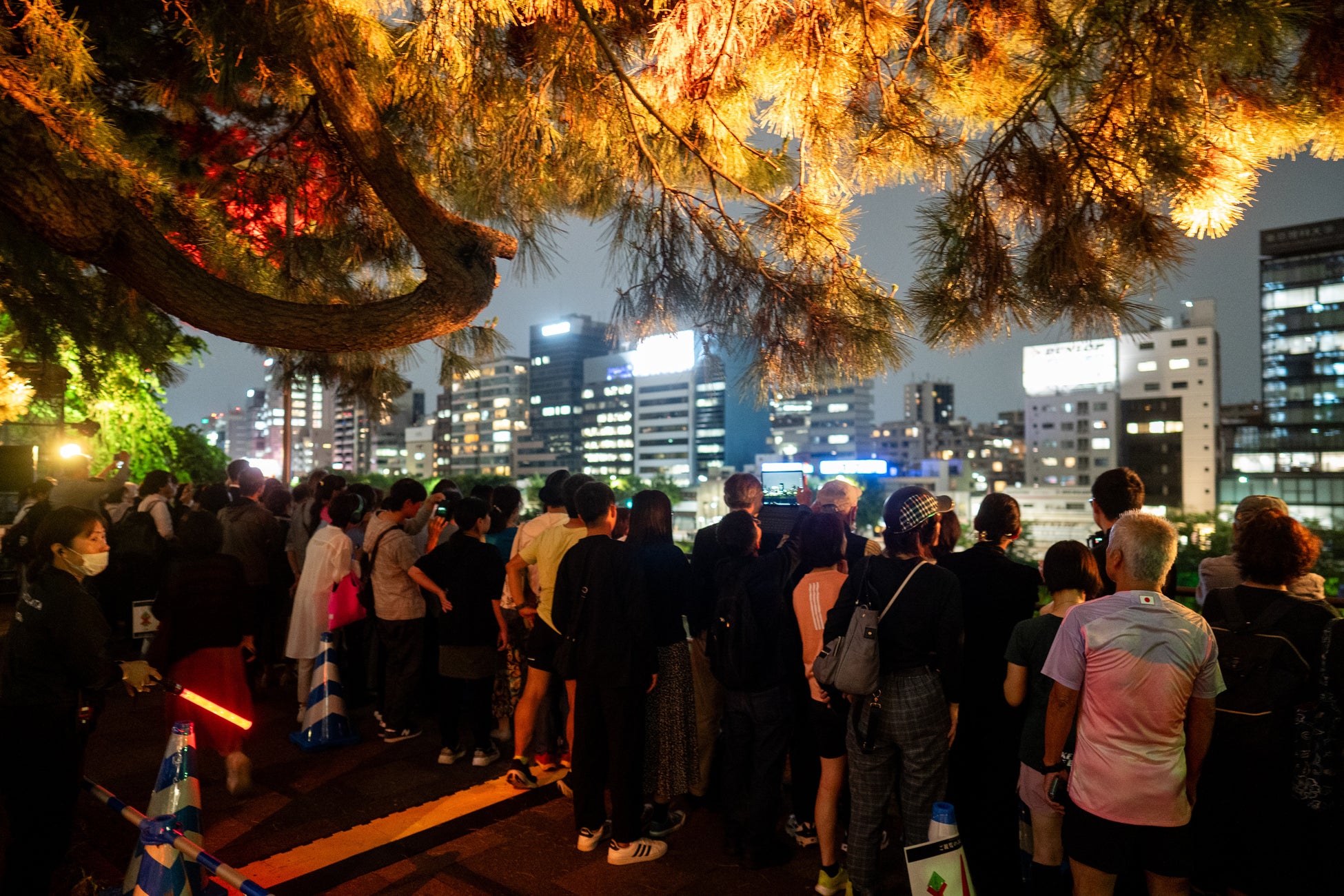 国指定史跡江戸城外堀跡・牛込濠の法面約100mにわたって、歌川広重の「名所江戸百景」に描かれた江戸の水辺の風景、花見や祭りで賑わう江戸のまちなど浮世絵をモチーフにしたプロジェクションマッピングを投影。