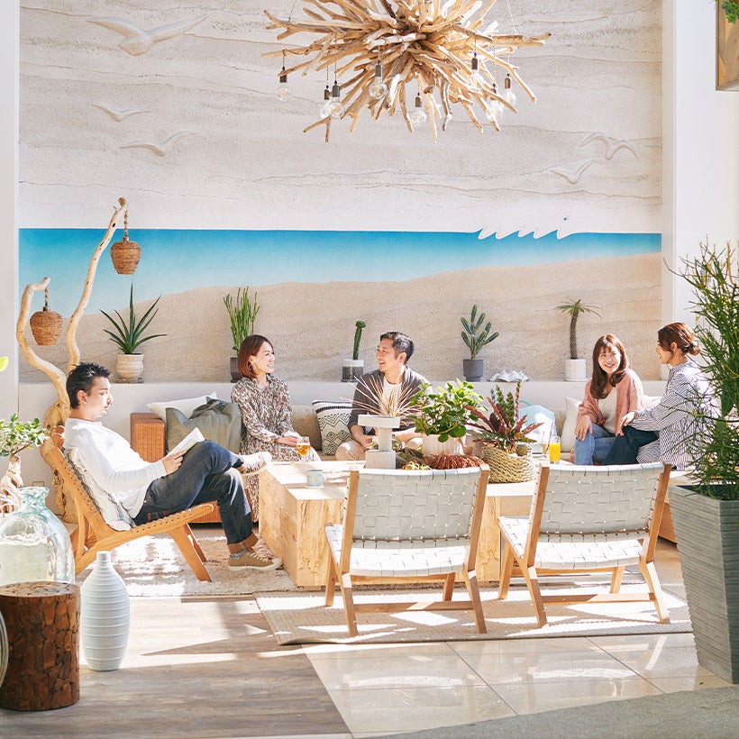 光降りそそぐテラスで風を感じたり、ベンチや小上がりでリラックスするなど、