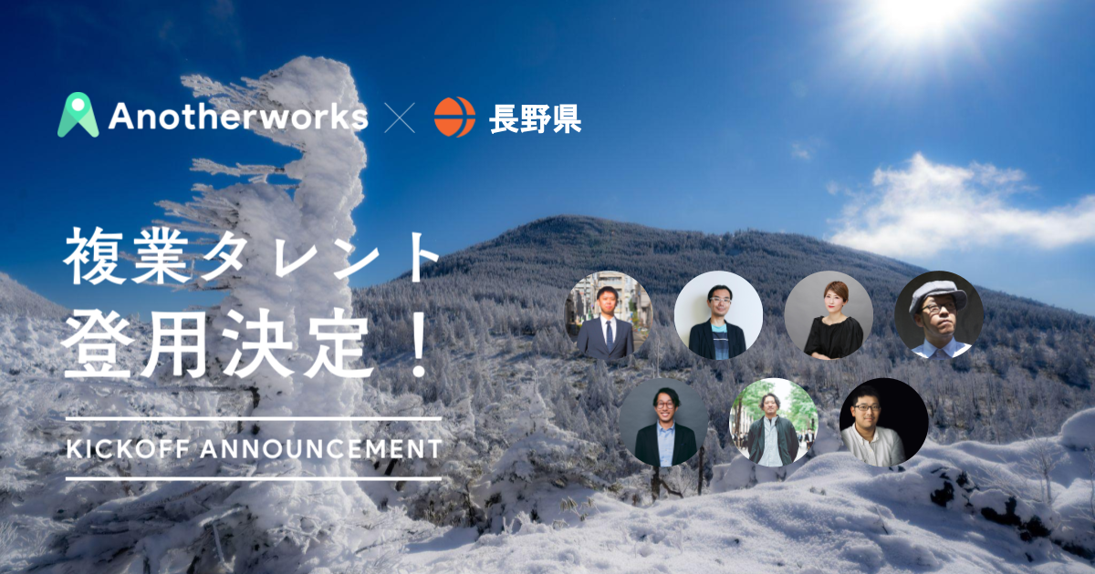 地方創生を推進する複業マッチングプラットフォーム「複業クラウド for Public」を展開する株式会社Another works(本社:東京都港区、代表取締役:大林 尚朝)は、2022年12月19日、長野県に複業人材を登用する実証実験において、即戦力の複業アドバイザー7名の参画が決定したことをお知らせいたします。