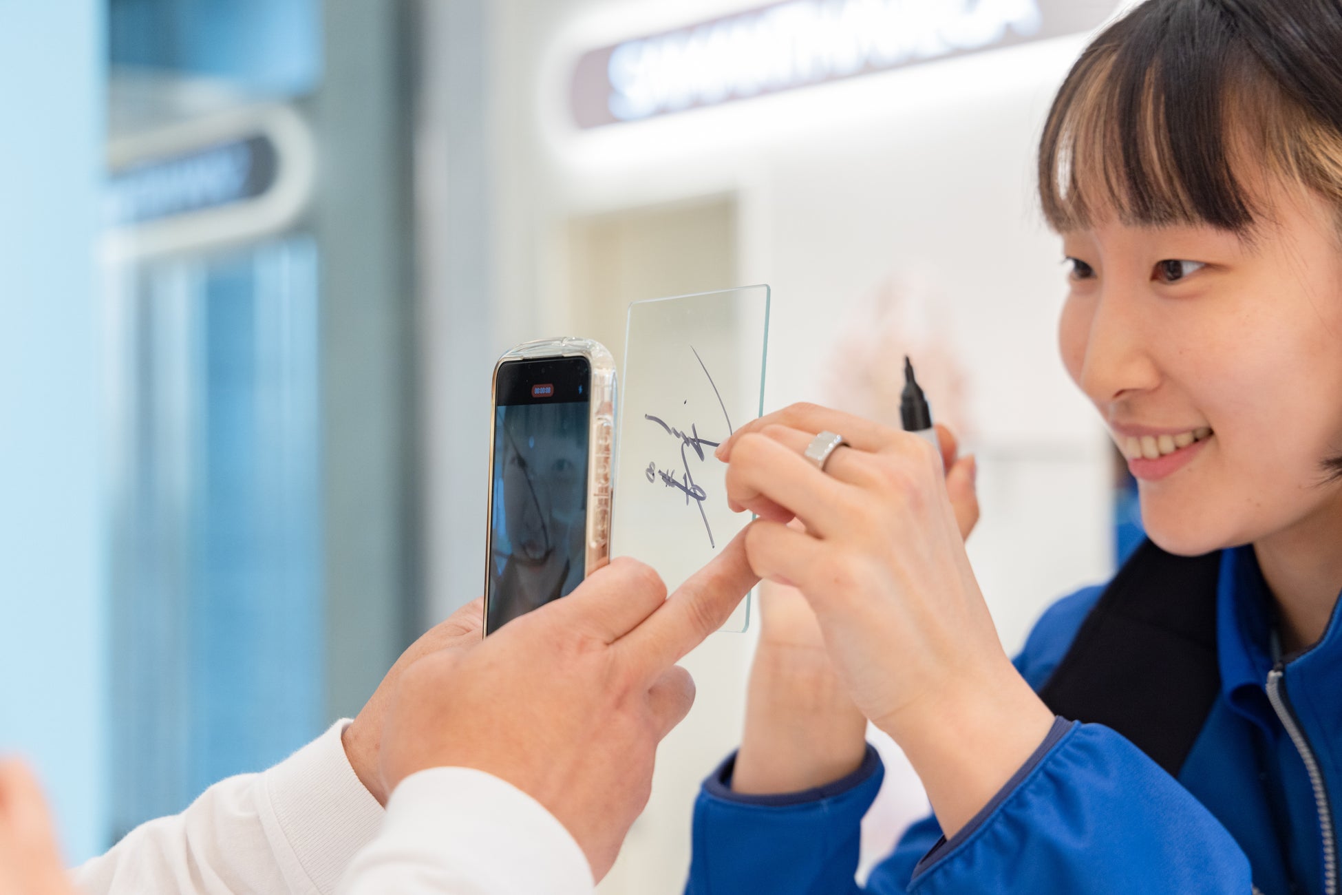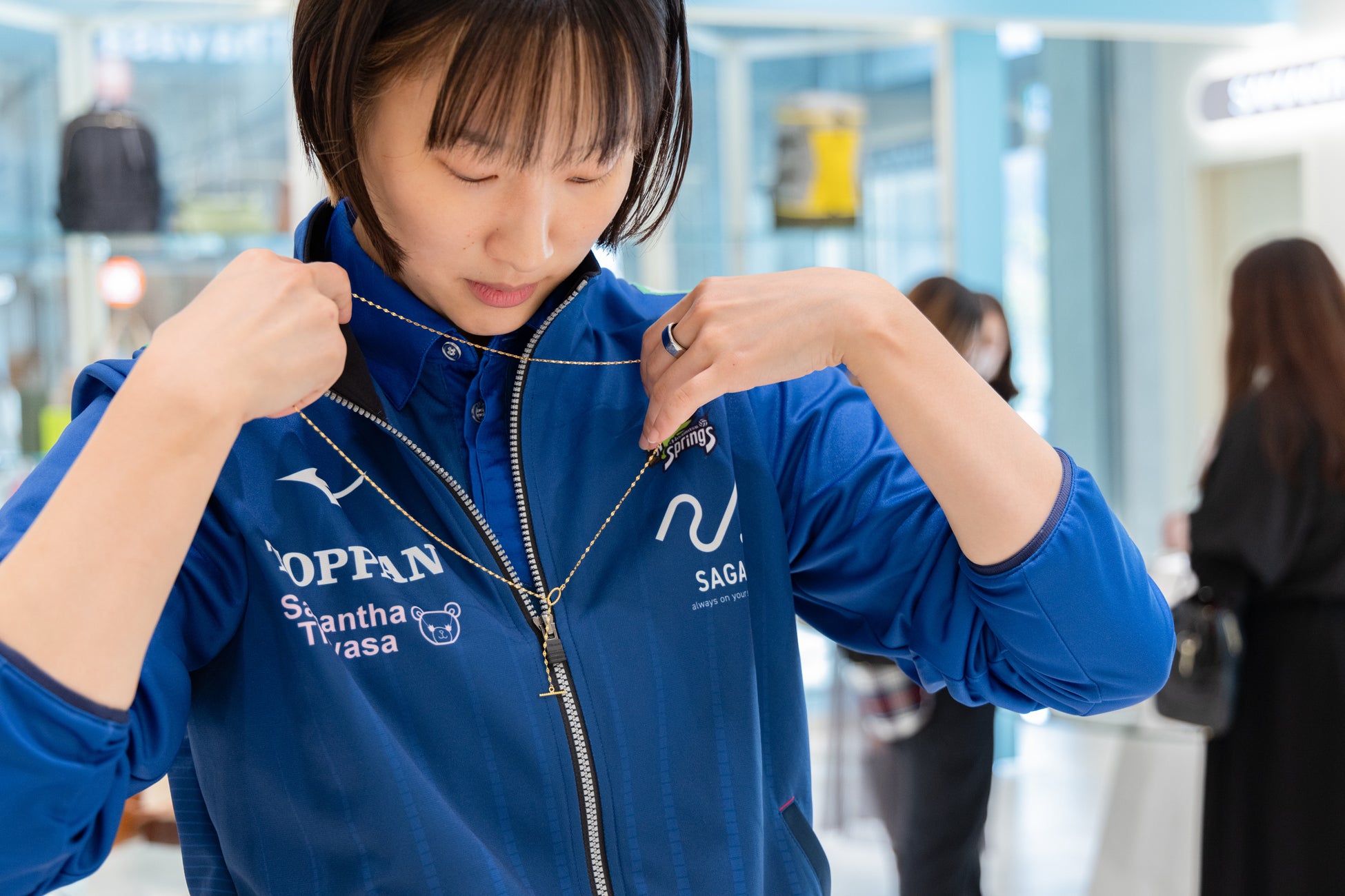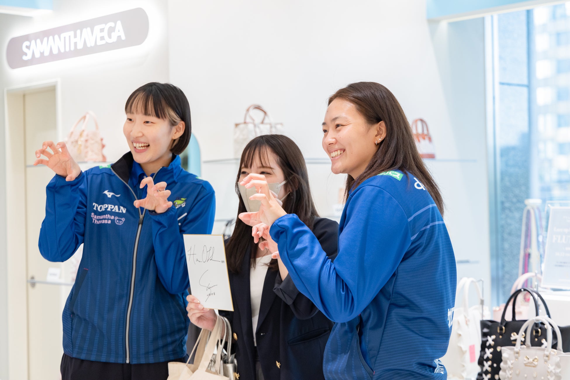 女子日本代表として今秋の杭州アジア大会で銀メダル獲得にも貢献したミドルブロッカーの平山詩嫣選手と、カリフォルニアで⽣まれ育ち、9月に久光スプリングスに加入した奥原花選手の2名が来店。