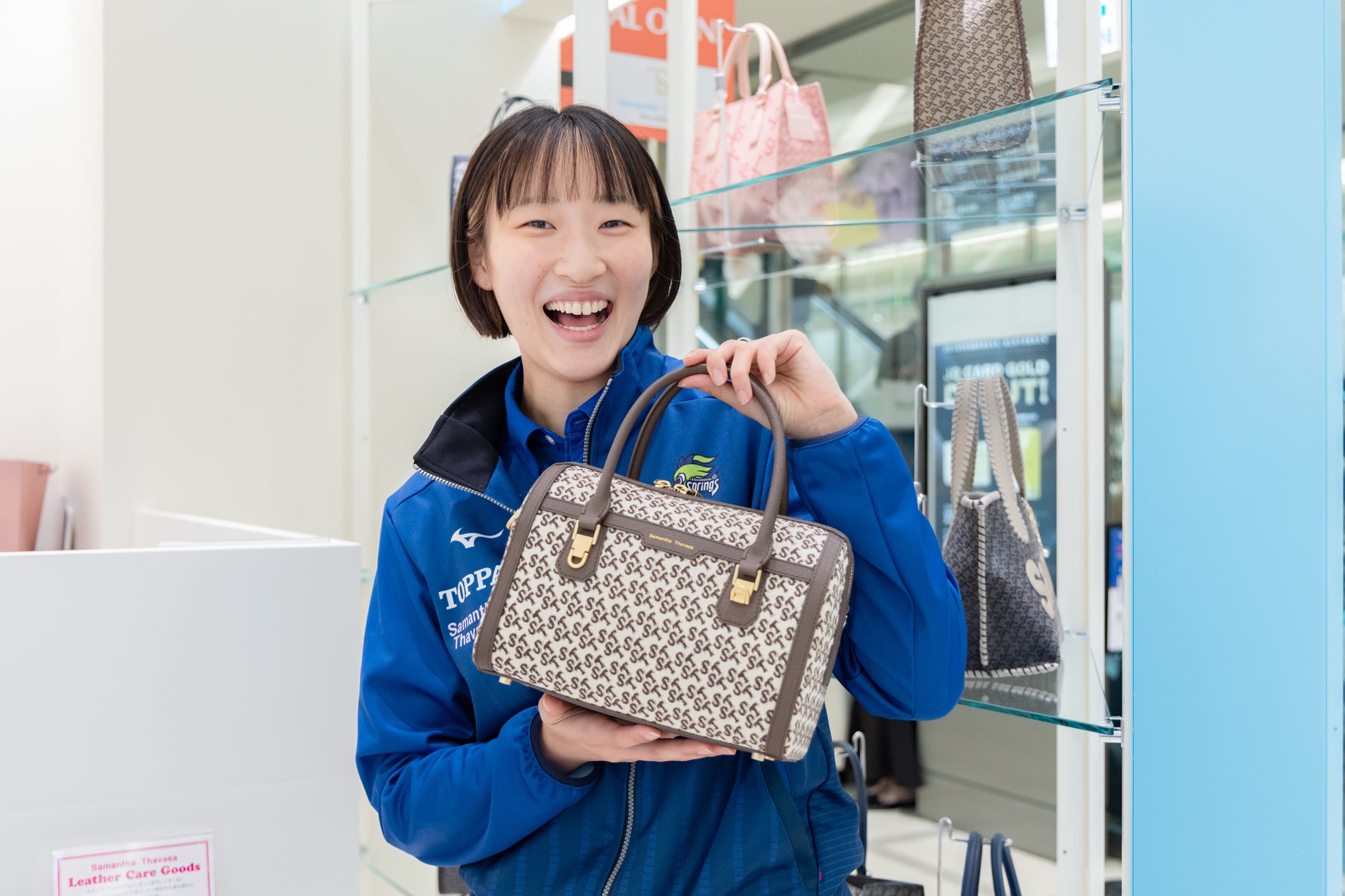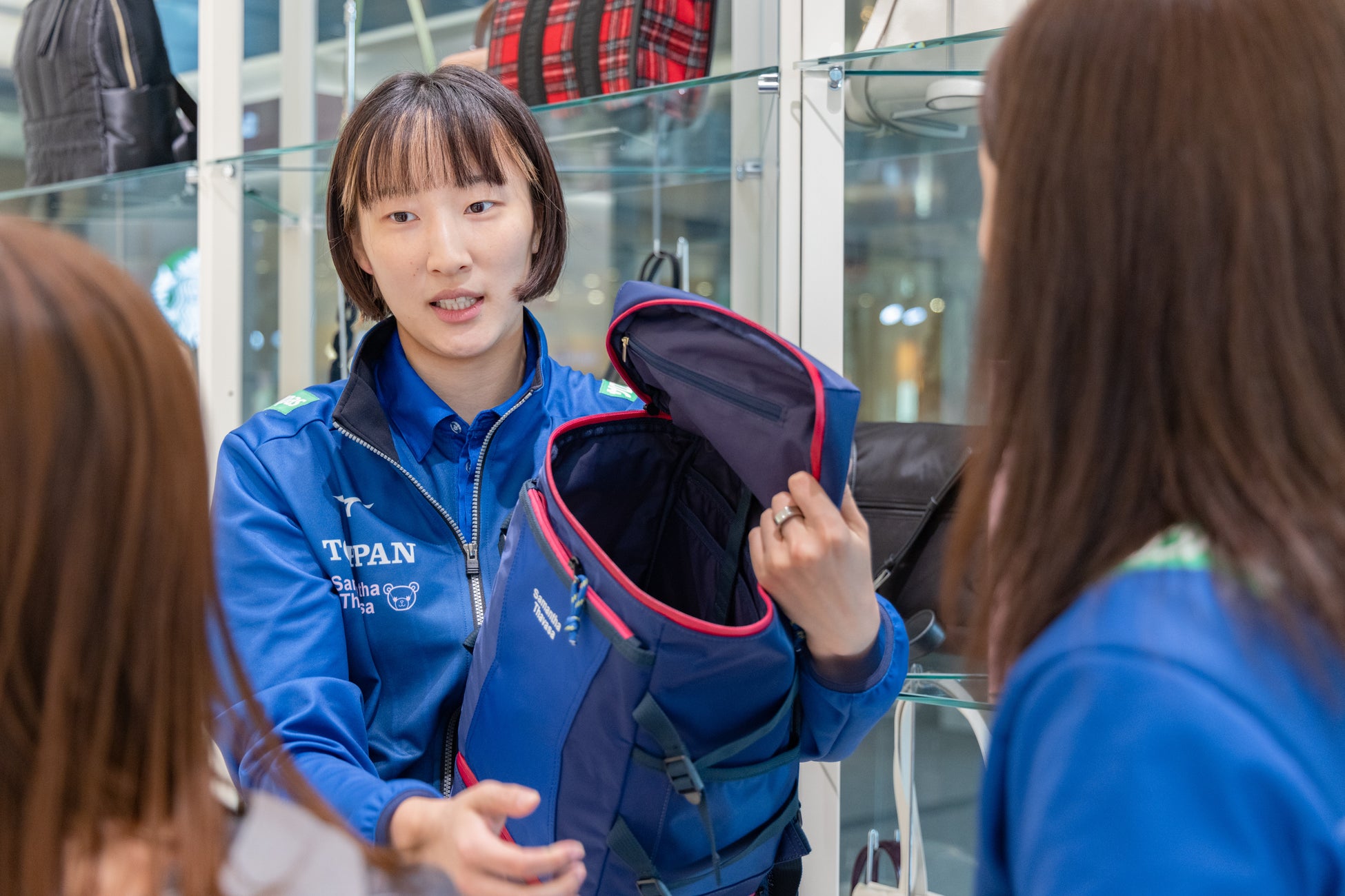 サマンサタバサ店舗への来店が人生初となった、来日したばかりの奥原選手は、