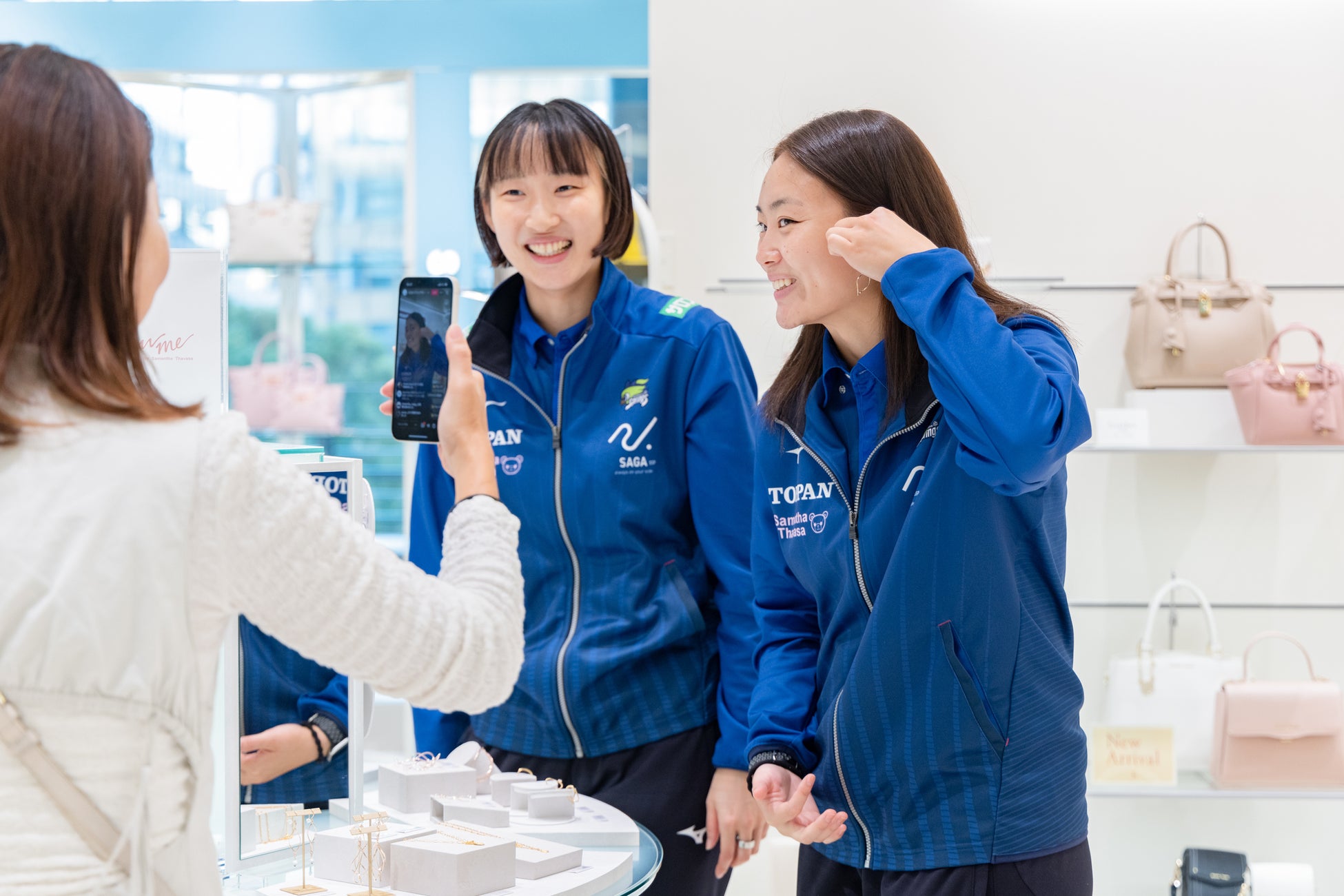 佐賀県鳥栖市に拠点を置く久光スプリングスの選手がアミュプラザ博多店に初来店した。
