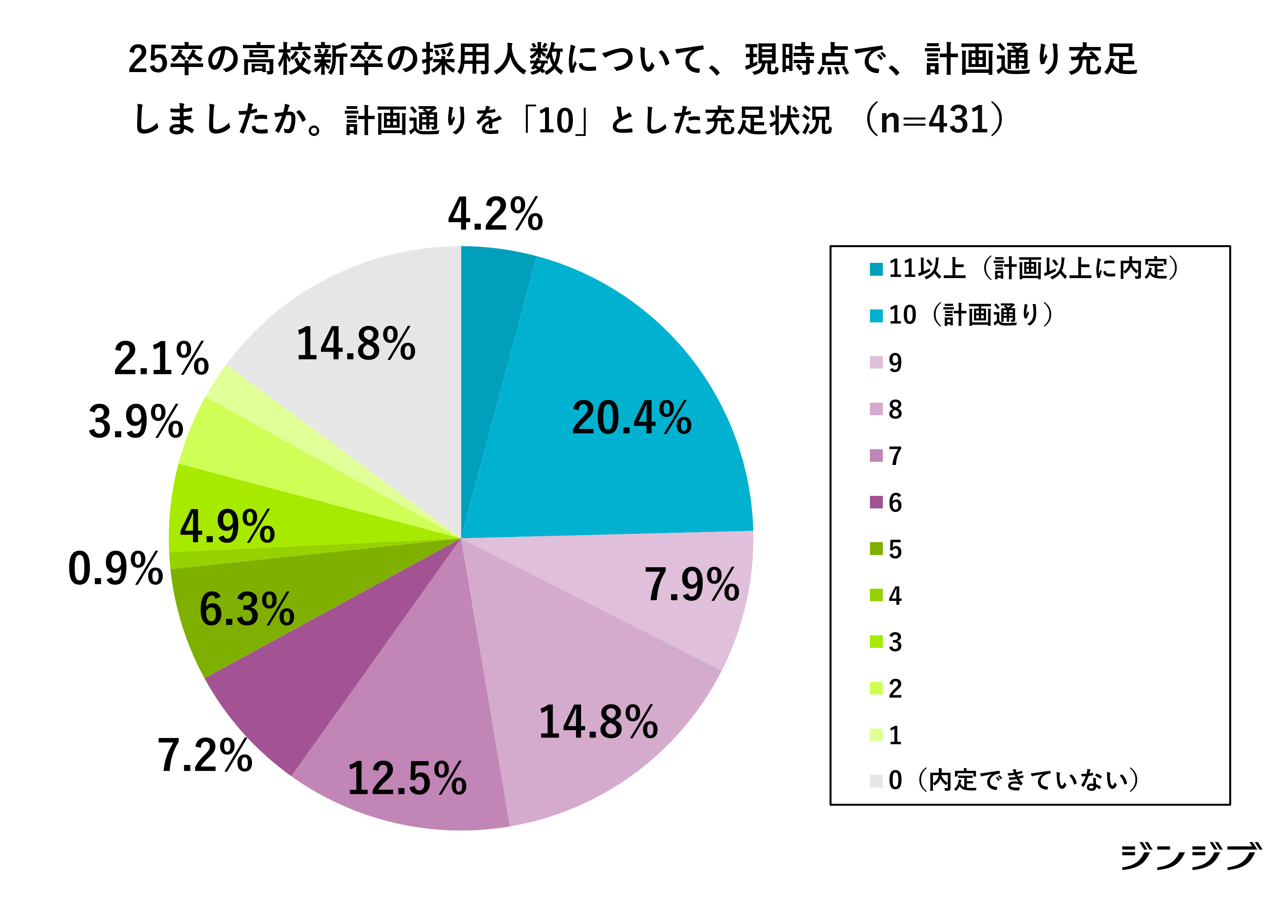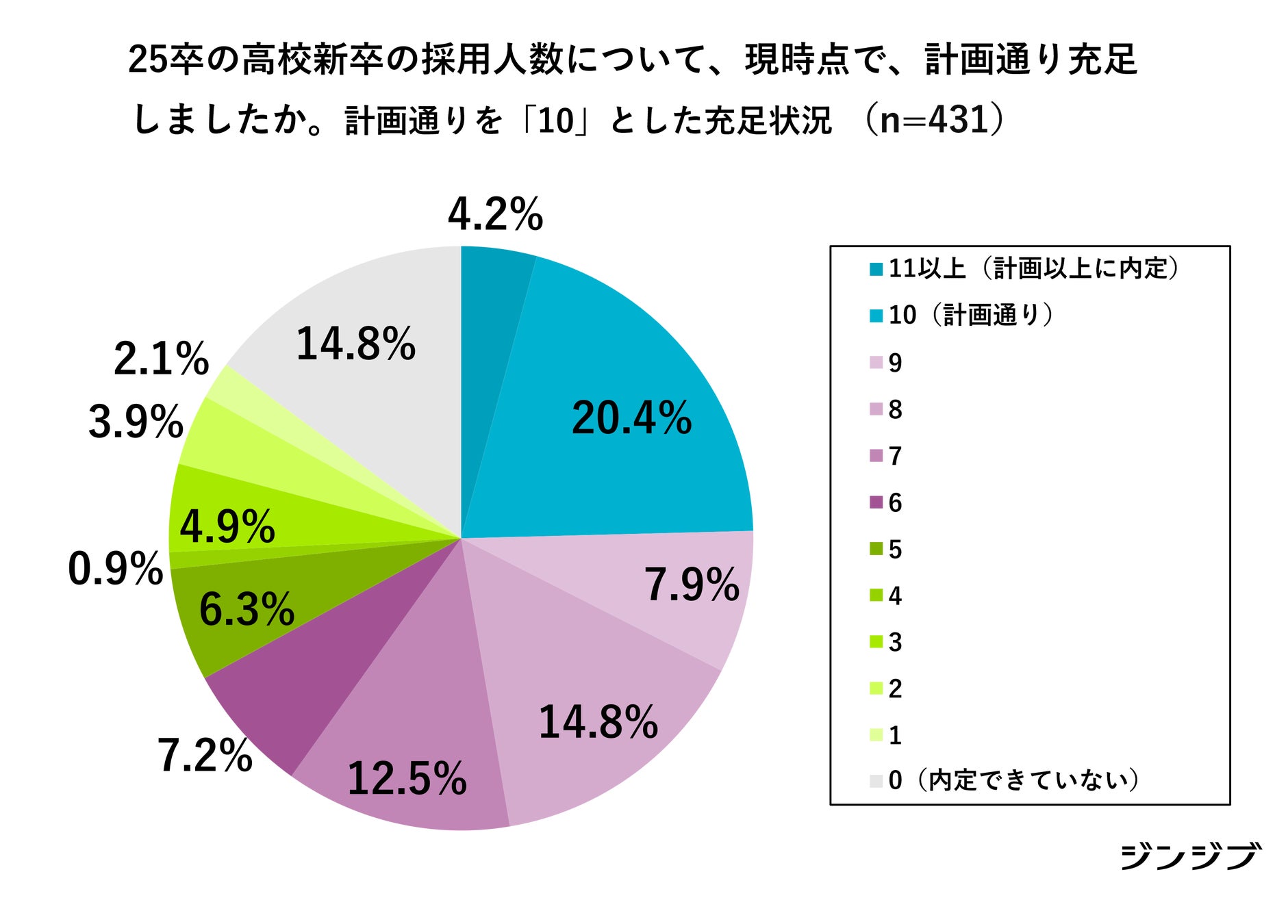 25卒の高卒採用「計画通り」または「計画以上に内定出せた」と回答した企業は約25%。