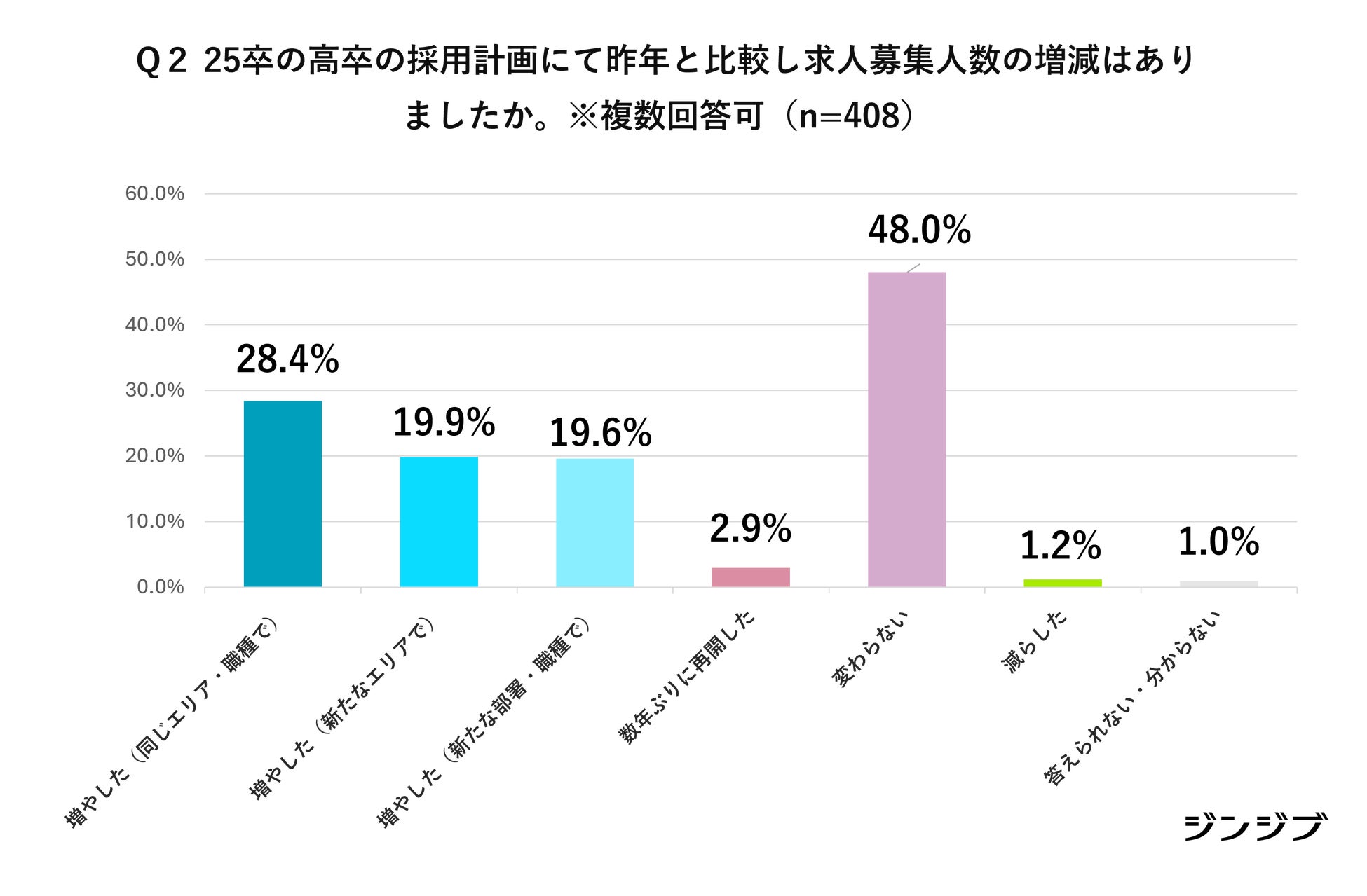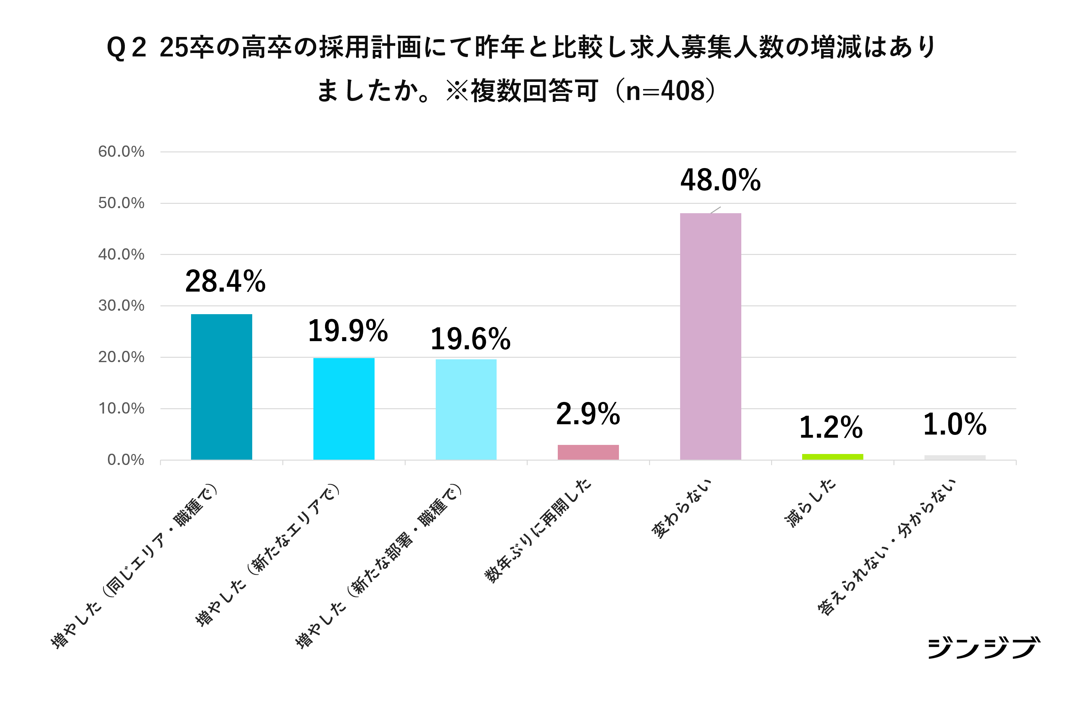 2.25卒の高卒の採用計画にて昨年と比較し求人募集人数の増減はありましたか。※複数回答可(n=408)