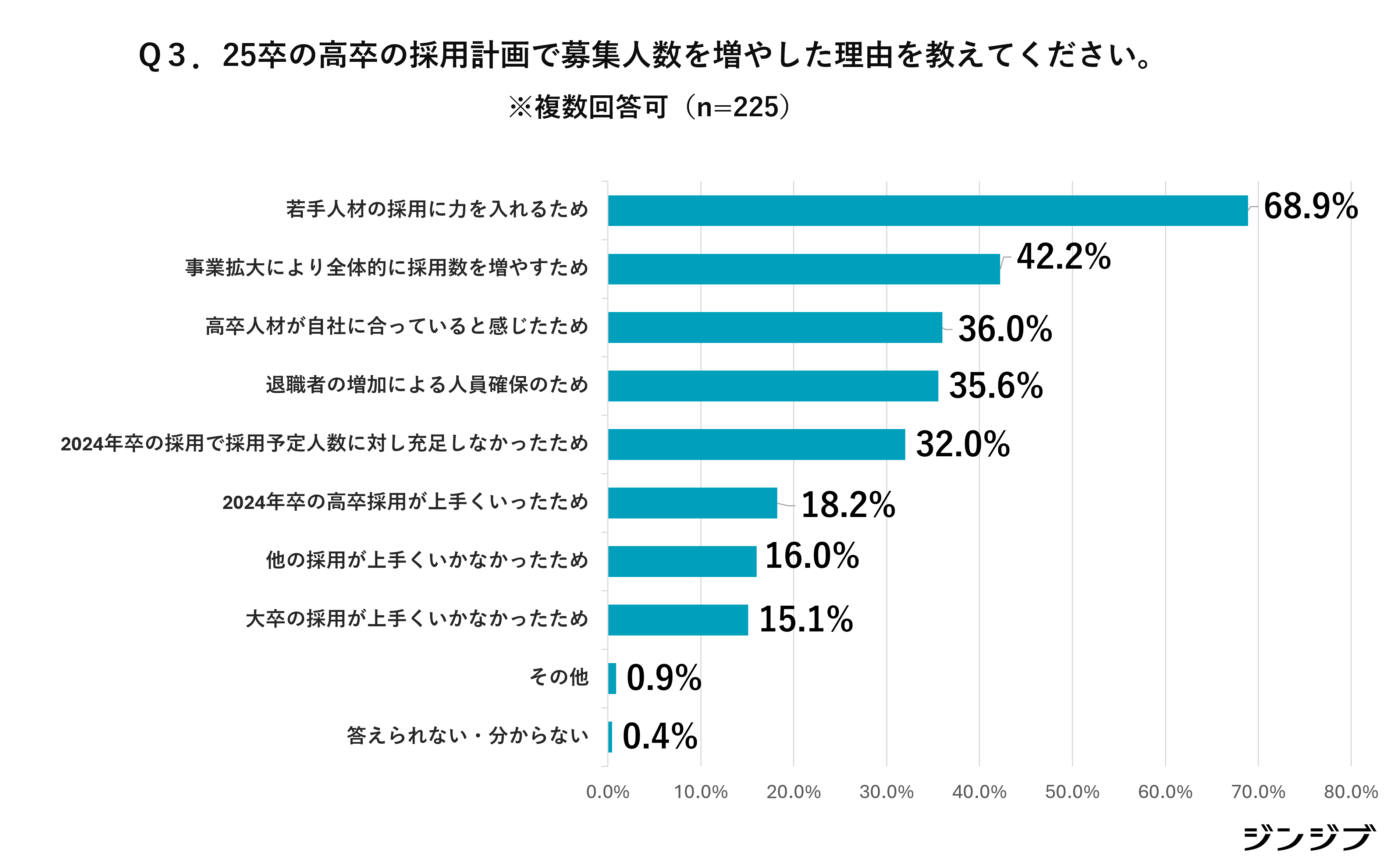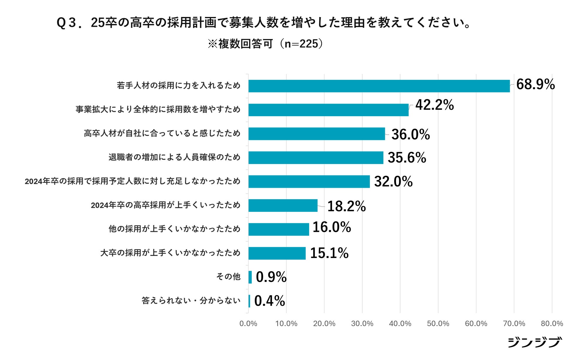 3.25卒の高卒の採用計画で求人募集人数を増やした理由を教えてください。※複数回答可 (n=225)