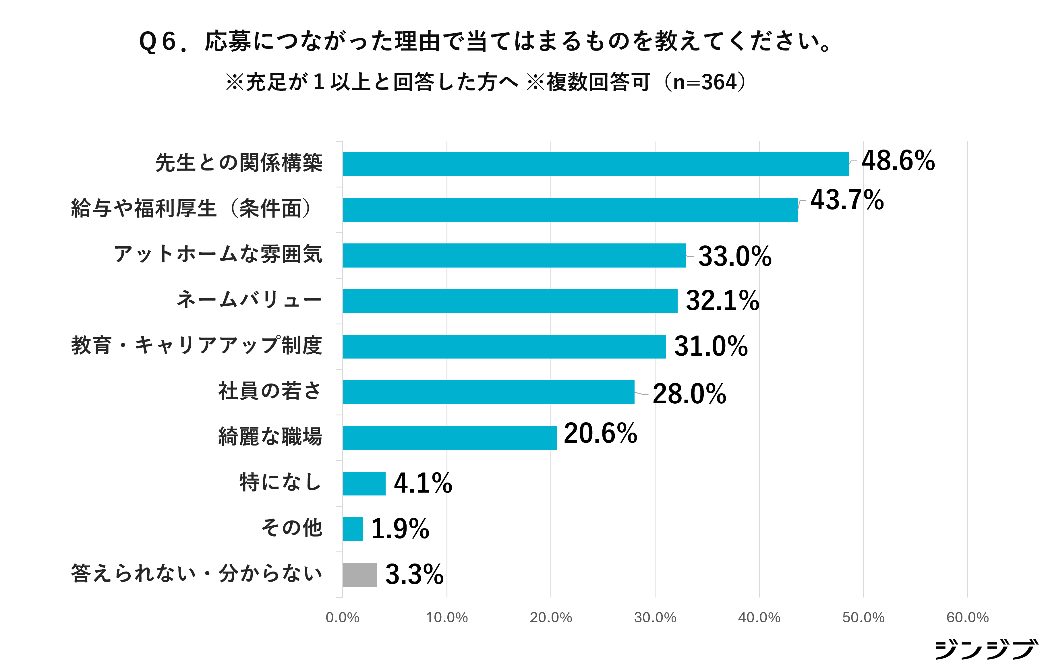 6. 応募につながった理由で当てはまるものを教えてください。※充足1~11以上と回答 ※複数回答可 (n=364)