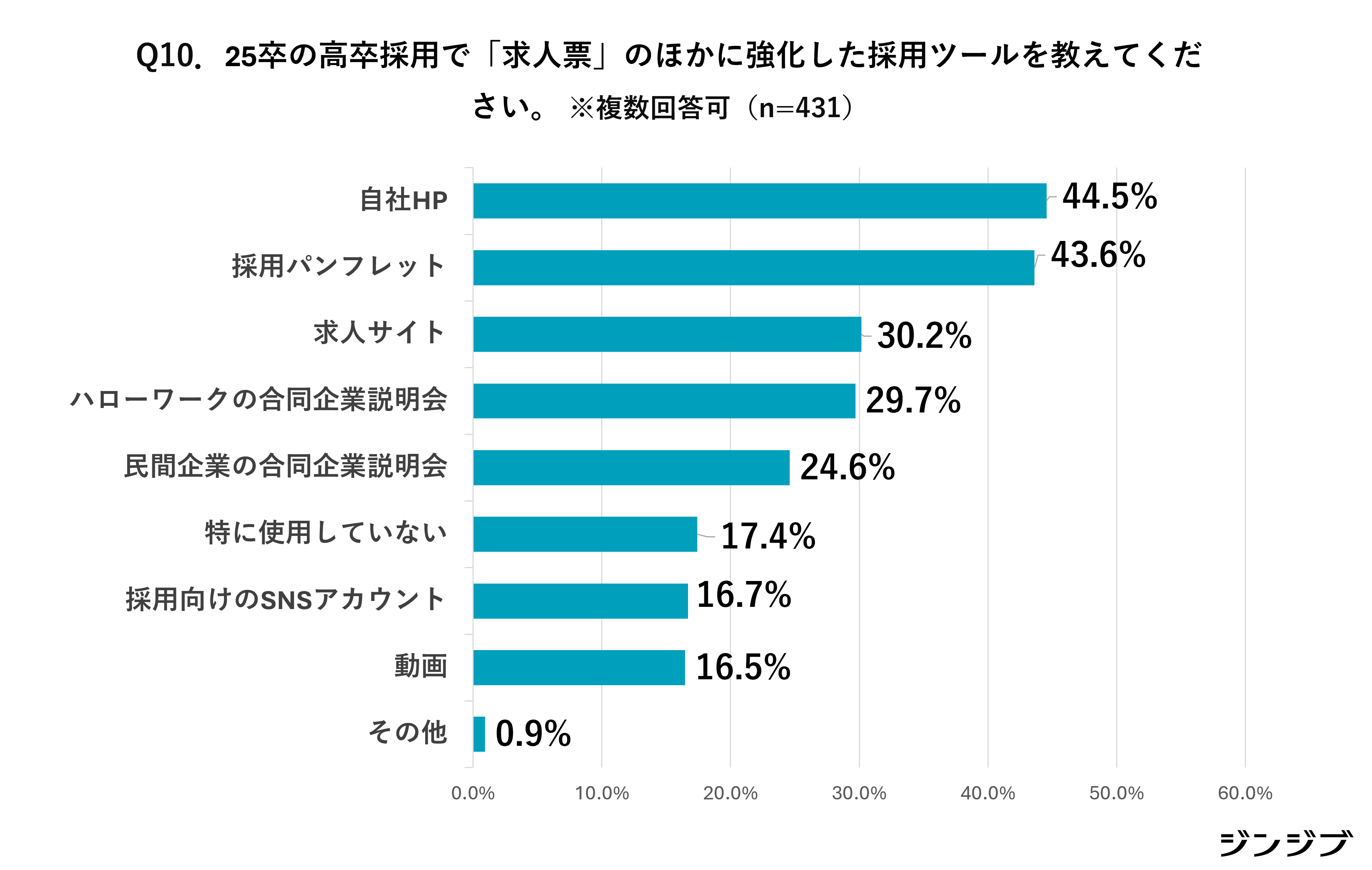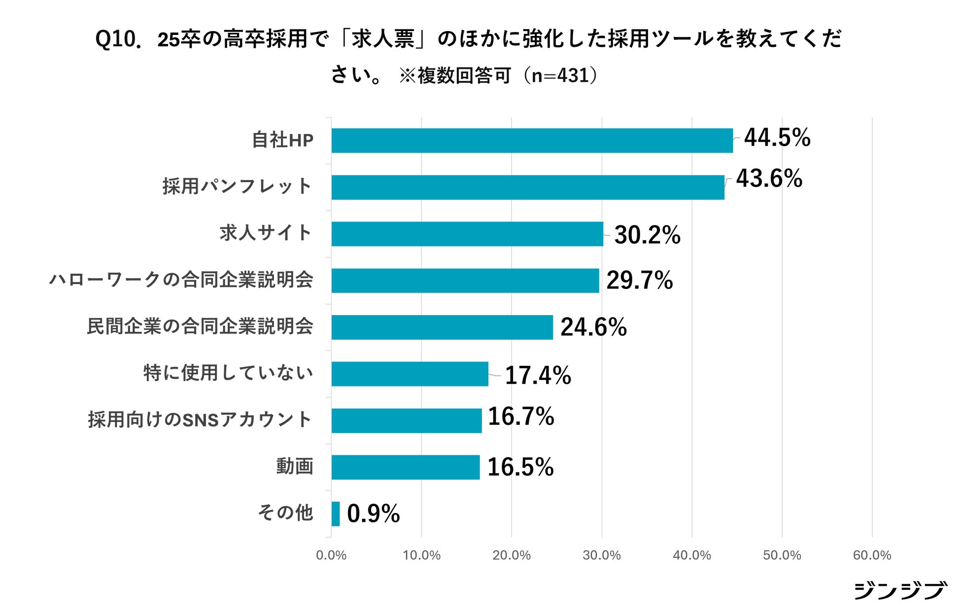 10.25卒の高卒採用で「求人票」のほかに強化した採用ツールを教えてください。※複数回答可(n=431)