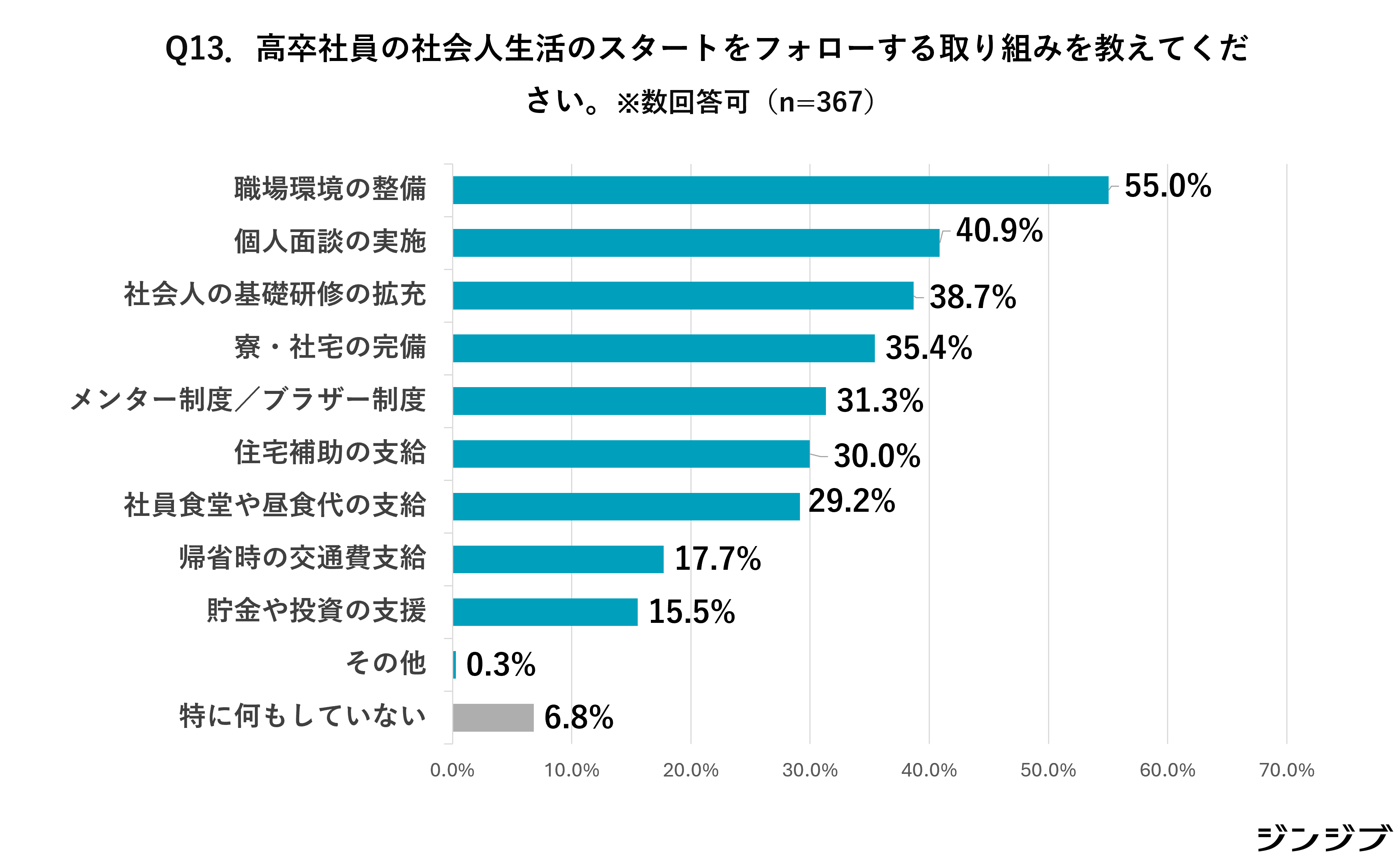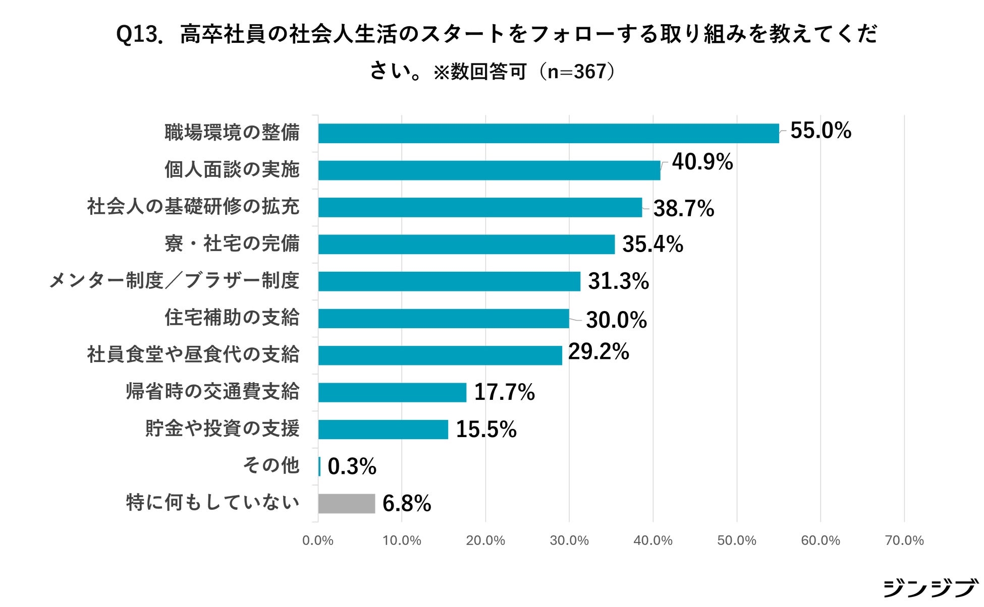 13.高卒社員の社会人スタートをフォローする取り組みを教えてください。※複数回答可(n=367)