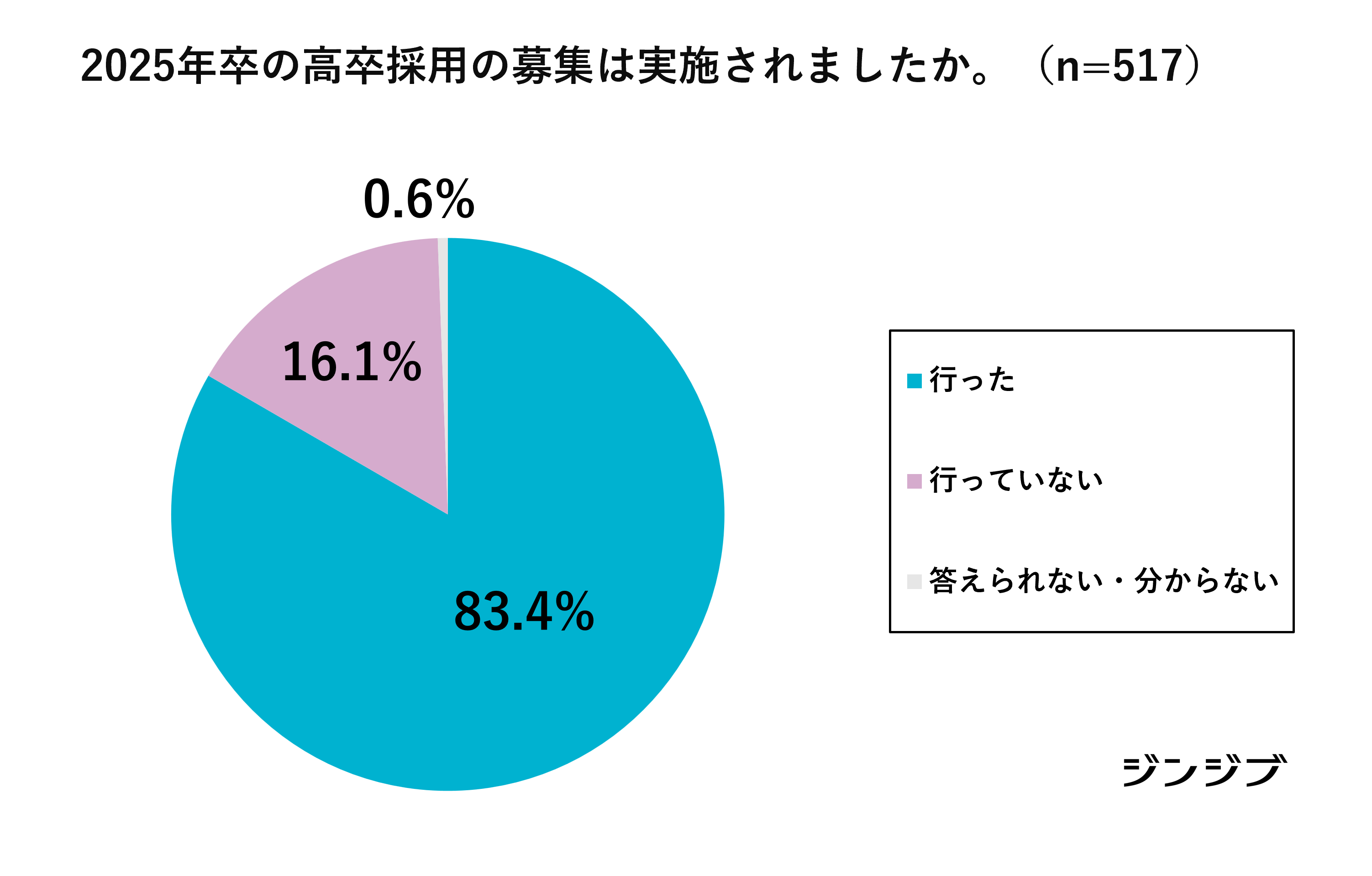 (調査期間:2025年1月28日~2月25日、有効回答数:517人、うち25卒の高卒採用実施はうち431人)
