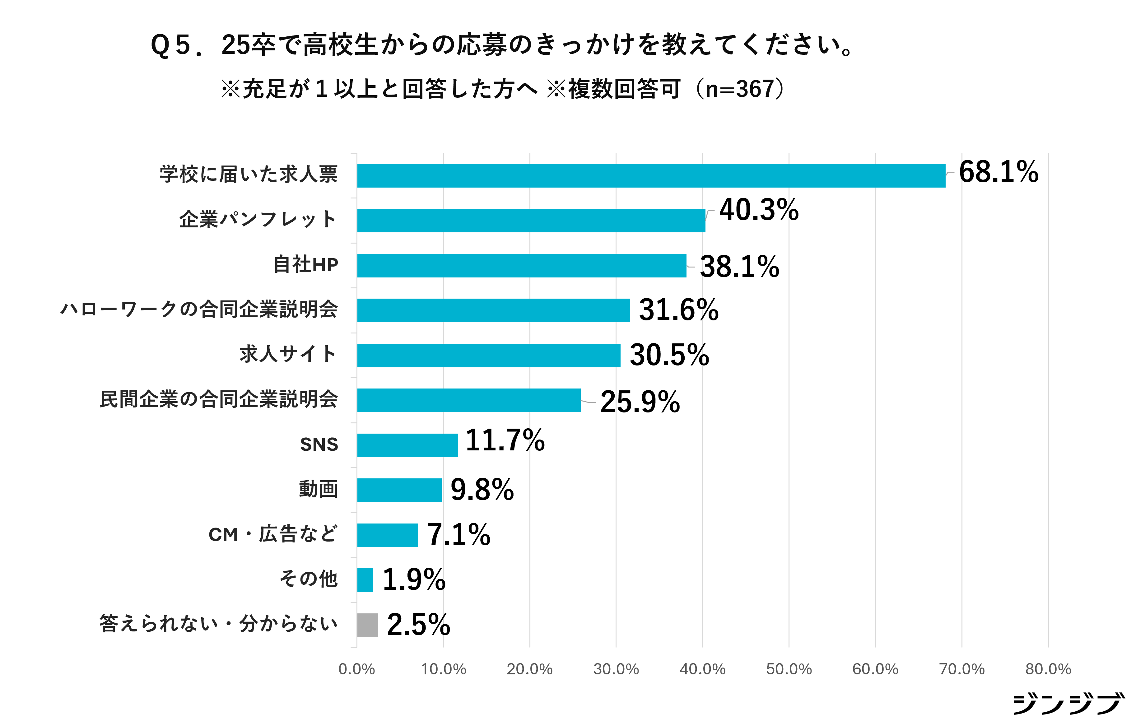 5. 25卒高校生からの応募のきっかけを教えてください。※ 充足1~11 以上と回答 ※複数回答可 (n=367)
