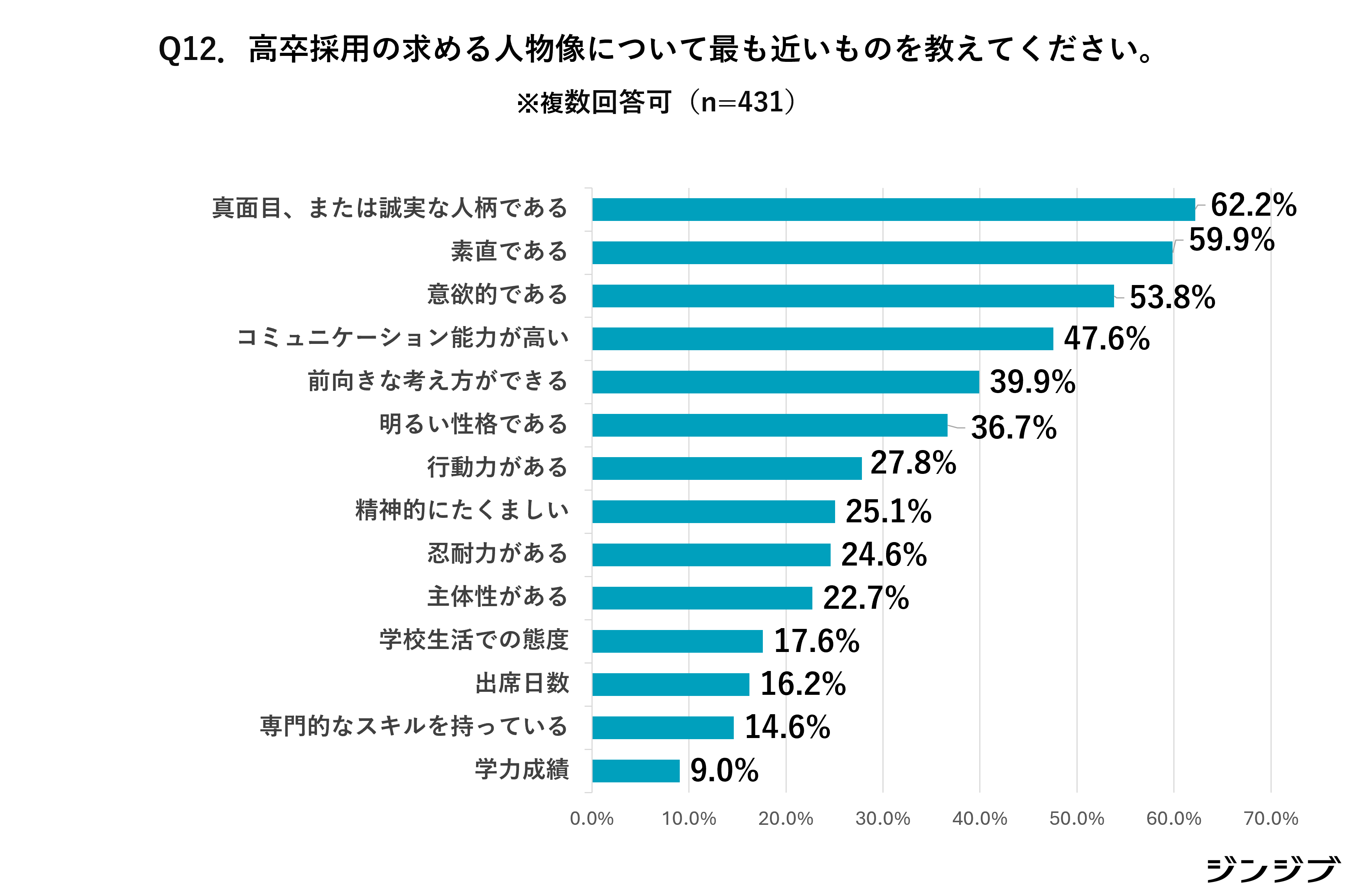 12.高卒採用の求める人物像について最も近いものを教えてください。※複数回答可(n=431)