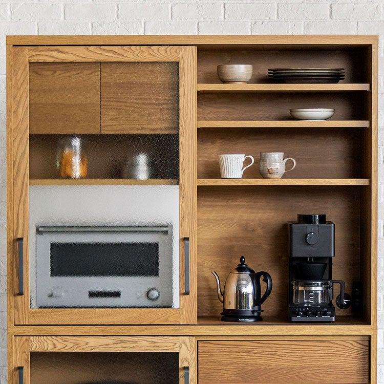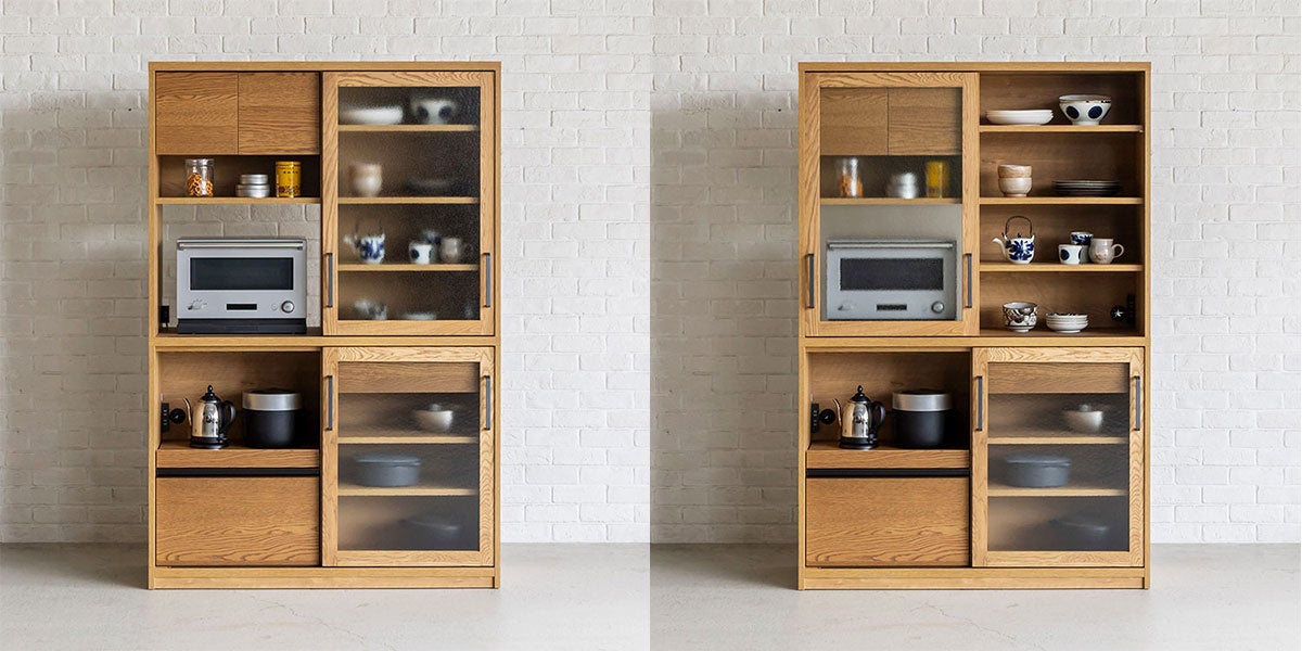スライド扉一つで「見せる&隠す」収納を切替えできる便利な食器棚