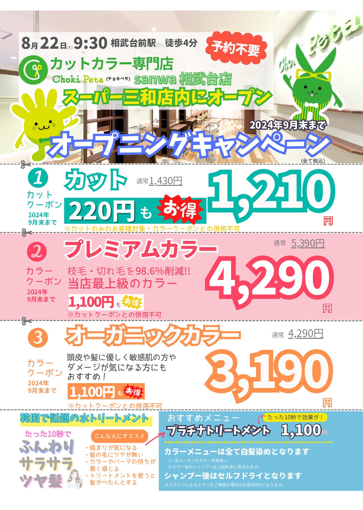 カットカラー専門店 チョキペタ sanwa 相武台店が8月22日(木)オープン