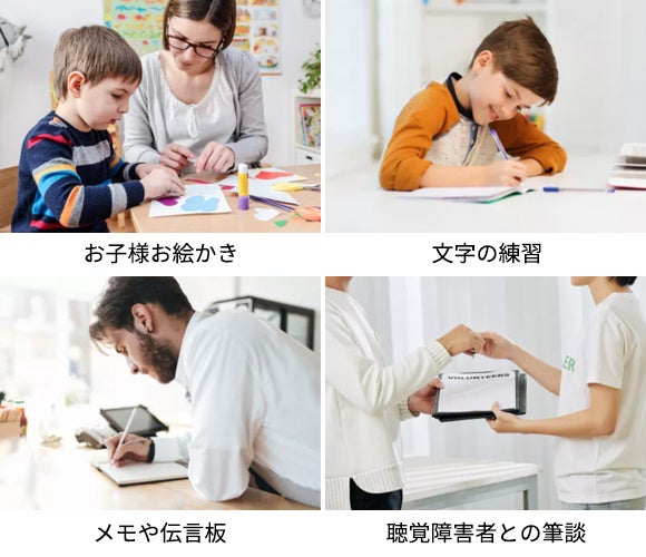 - ご家庭の伝言板などにはもちろん、オフィスなどのビジネスシーンや耳の不自由な方との筆談コミュニケーションにも役立ちます。