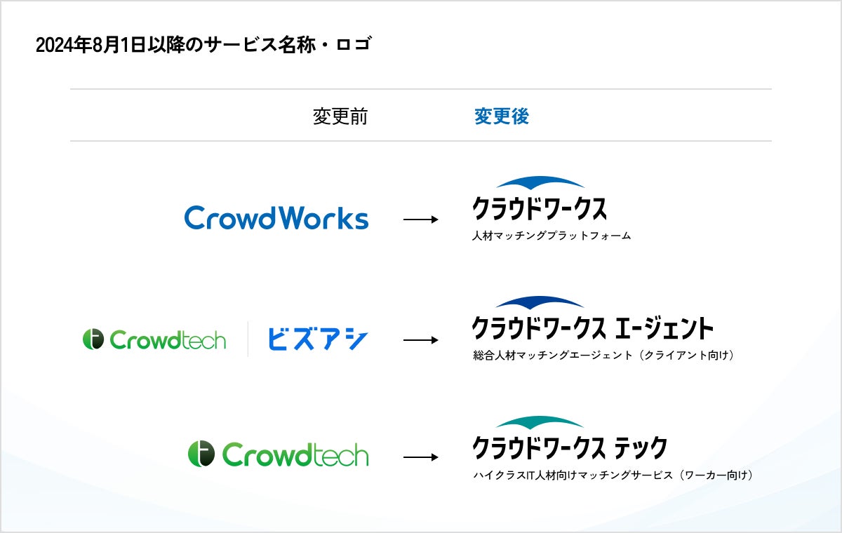 「クラウドテック」・「ビズアシ」のサービス名称を「クラウドワークス」ブランドに統一