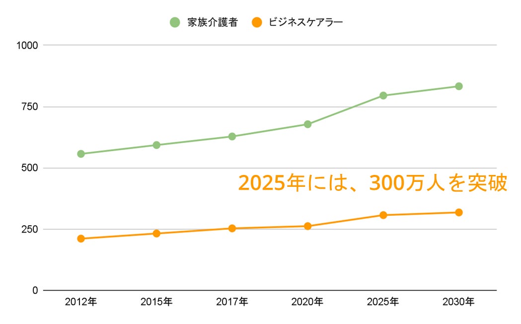 日本では超高齢化が進み、仕事と介護を両立する「ビジネスケアラー」が急増しています。その数は、2025年に300万人を超えるとされ、経済損失は年間 約9兆円にのぼるとされています。企業にとっても深刻な労働力の損失と生産性低下の要因となります。