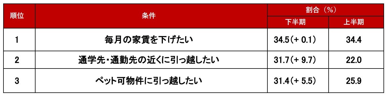 - 「通学先・通勤先の近くに引っ越したい」は、上半期から9.7ポイントアップ