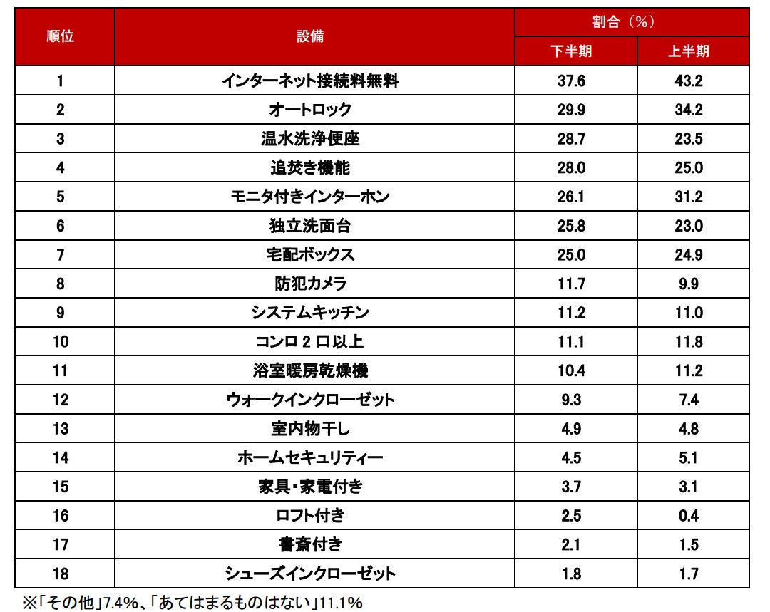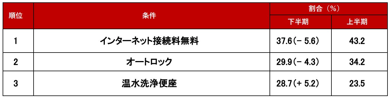 ~条件編1位「毎月の家賃を下げたい」、設備編1位「インターネット接続料無料」~