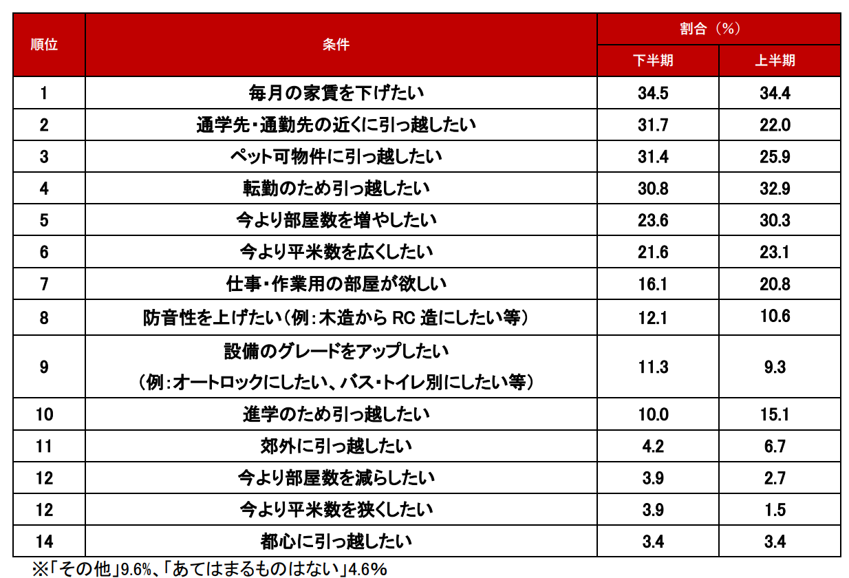 - 条件編1位「毎月の家賃を下げたい」34.5%