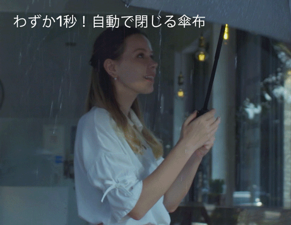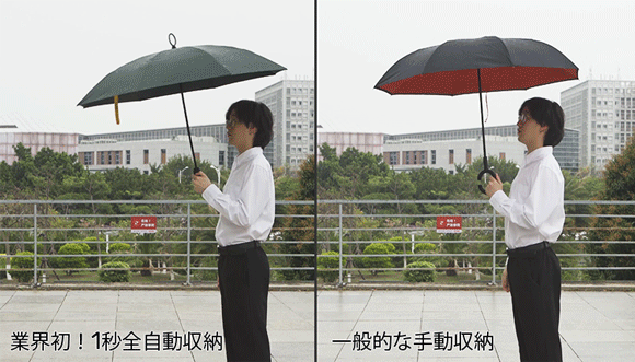 【業界初・全自動収納】1秒で傘布を閉じて柄を縮小!