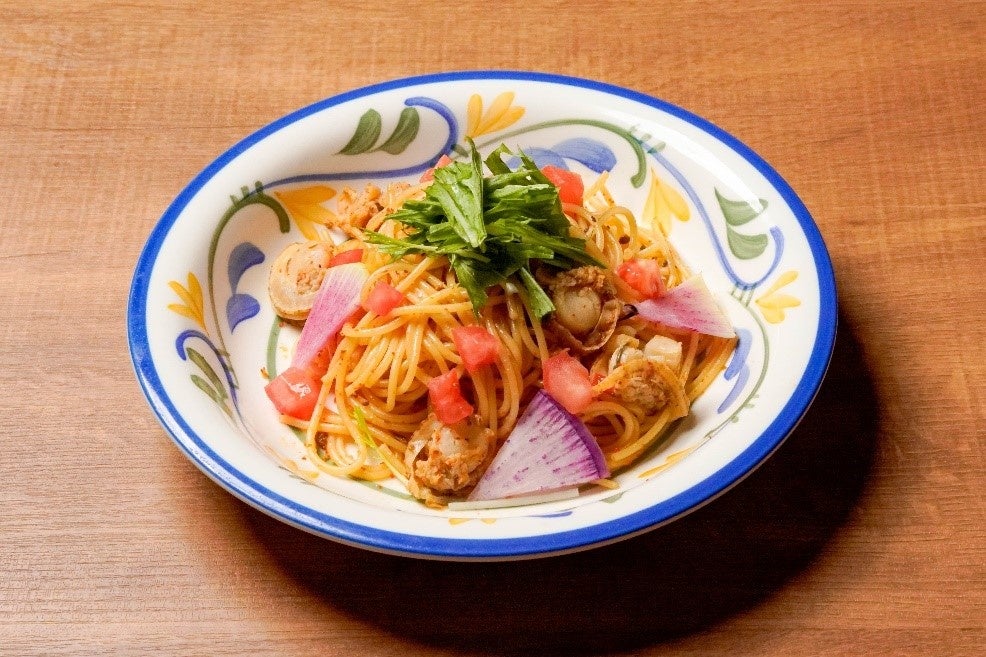 ●「山のラー油を使ったほたてと彩野菜のパスタ」880円