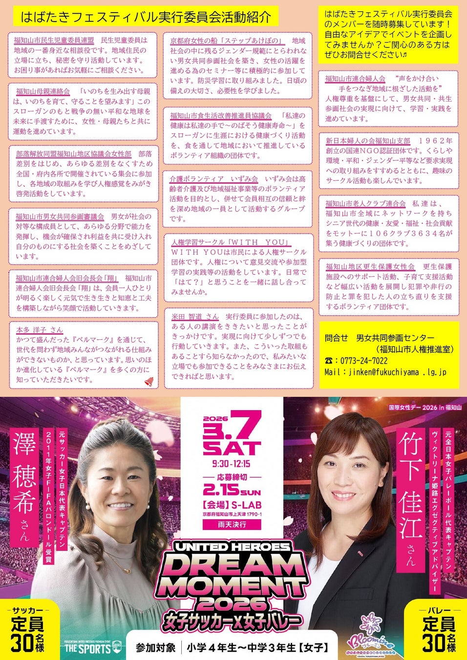 お問合せ:フェスティバル事務局(福知山市 市民生活部 人権推進室)TEL 0773-24-7022