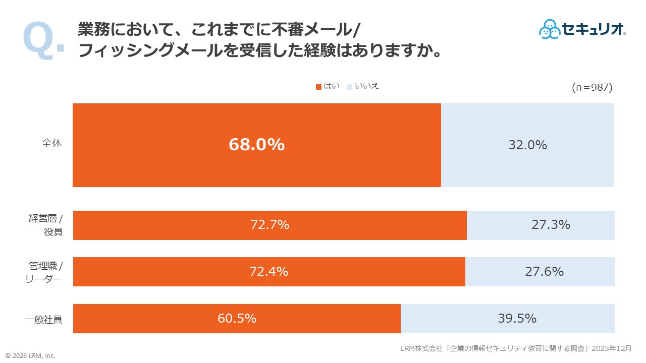 【1,000名調査】セキュリティ教育を受けても「行動が変わらない」一般社員が約5割。経営層のインシデント経験率は一般社員の約1.7倍に