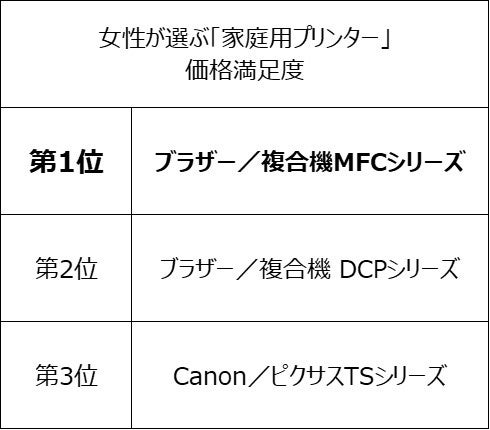 2022年6月に実施した調査において、「EPSON/カラリオ複合機EW・EPシリーズ」が女性が選ぶ「家庭用プリンター(インクジェット複合機)」利用率第1位、「ブラザー/複合機MFCシリーズ」は価格満足度第1位(同商品はオススメ率第1位も受賞)、「Canon/ピクサスTSシリーズ」は総合満足度第1位、「EPSON /エコタンク搭載EW・EPシリーズ」はリピート率第1位を受賞しました。