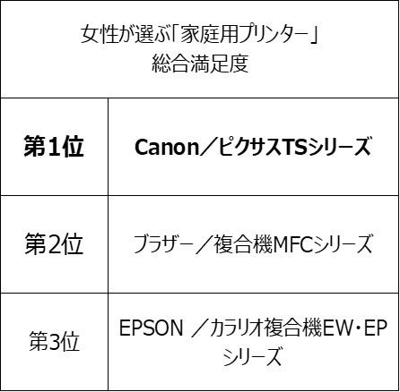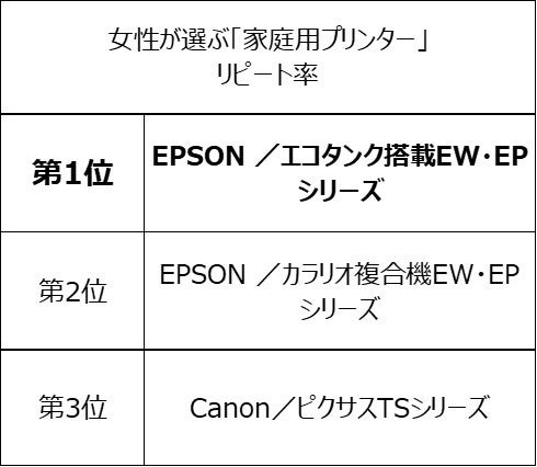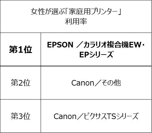 ◆女性が選ぶ「家庭用プリンター(インクジェット複合機)」ランキング、利用率1位は「EPSON」
